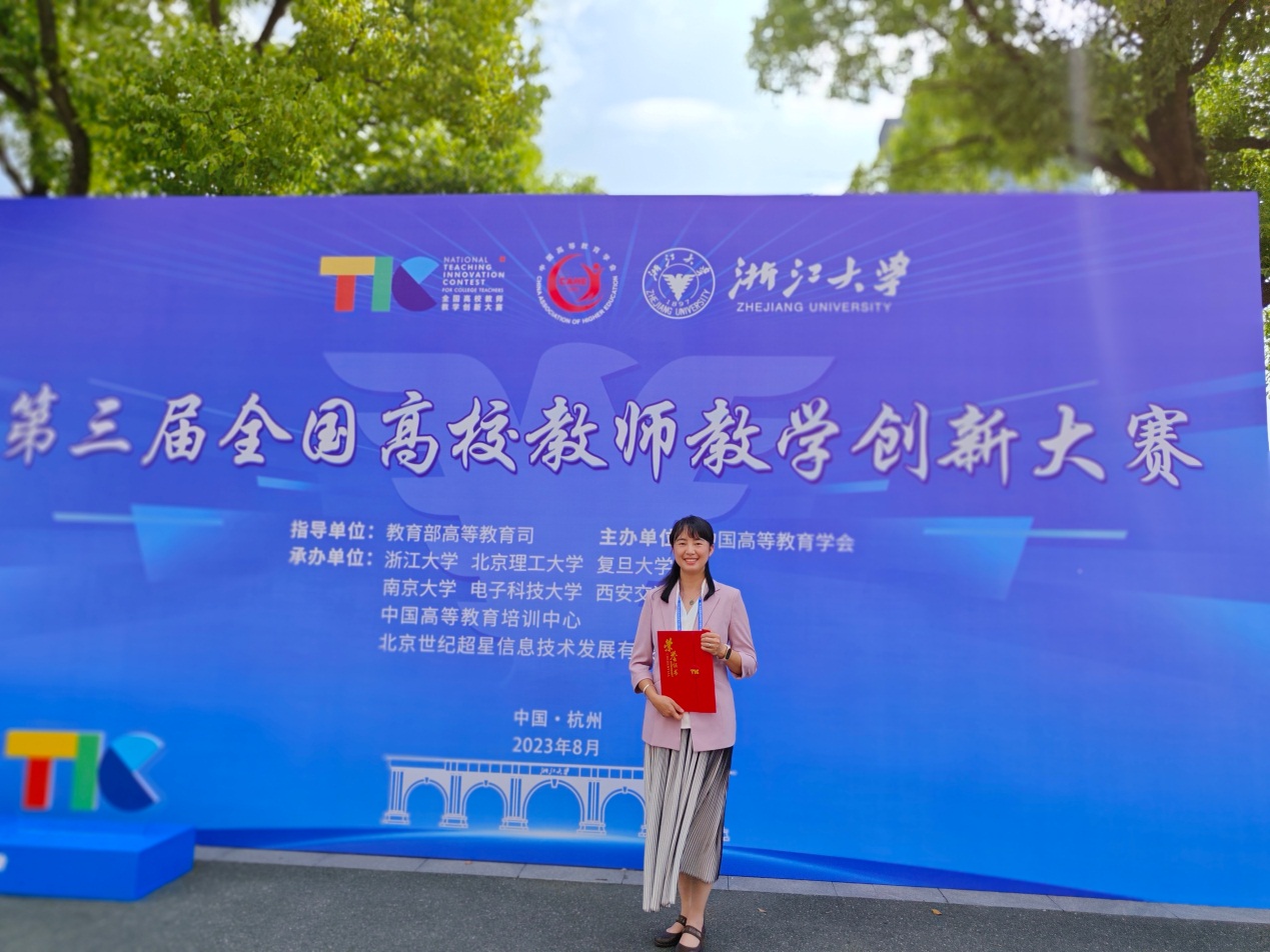李少娟团队应邀作为三等奖代表到场领奖并到决赛现场进行观摩和交流。李少娟主讲的课程是《环境科学》,课程团队自2016年以来,有针对性地开展教学创新改革,育人效果彰显,深受学生喜爱,累计获得20项国家级、省级、校级教学奖励,多次指导学生在国家级、省级专业竞赛中获奖,并指导学生发表高水平论文11篇(包括SCI 论文 Q1-Q3 区文章3篇)。