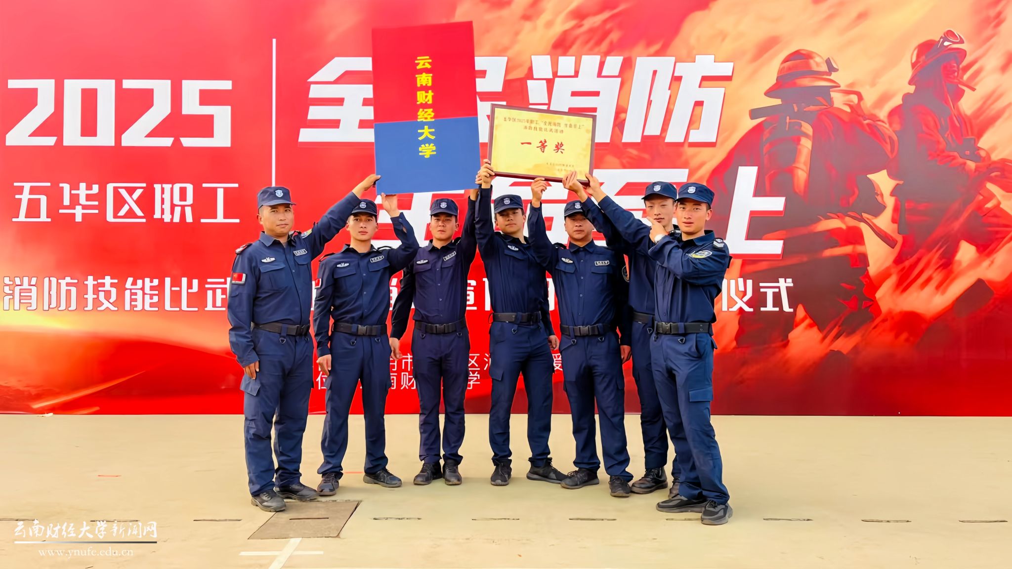 11 月 7 日,在2025 年五华区职工“全民消防 生命至上” 消防技能比武暨消防宣传月活动中,买球安保队员夺得“重点单位微型消防站组” 团体总分第一名,展现出学校安保队伍扎实的专业能力与团结协作的精神风貌。活动由昆明市五华区消防救援局主办、买球协办。 在个人项目中,买球队员获百米负重项目二等奖,原地着灭火防护服项目获一等奖、三等奖各 1 项,一人两盘水带连接操项目一等奖、三等奖各 1 项。 学校党委委员、副校...