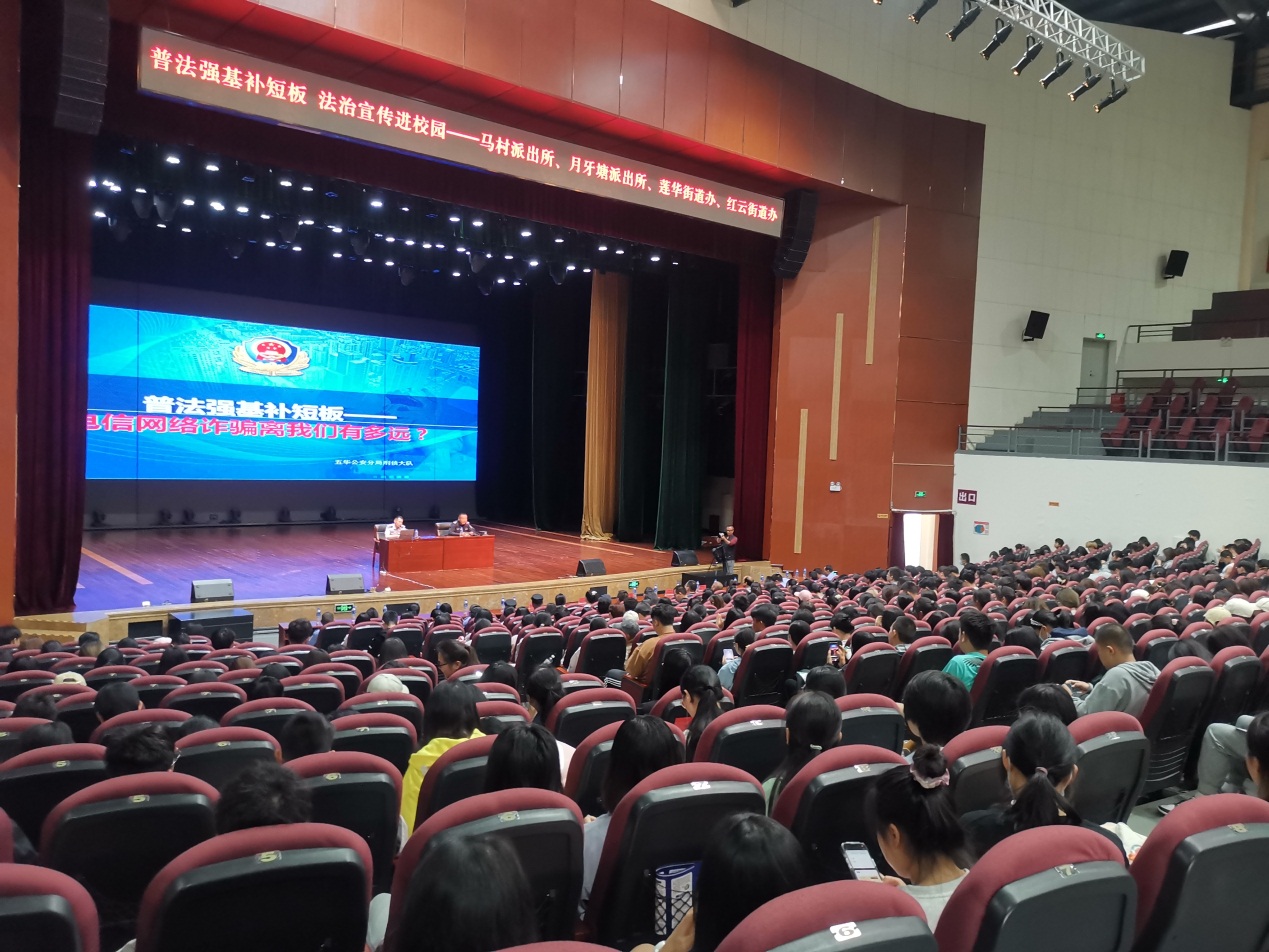 为加强学生防范电信诈骗和网络诈骗的意识,预防学生财产安全受到侵害,5月12日下午,五华公安分局刑侦大队(五华区反诈中心 )五中队中队长何磊警官应邀到校开展防范电信诈骗的安全教育讲座。昆明市公安局五华分局刑侦大队、马村派出所、月牙塘派出所、五华区莲华街道司法所、综治办、红云街道综治办、五华区检察院、五华区自然资源局相关负责人,买球学生处、保卫处干部职工及学生共1000余人参加讲座。