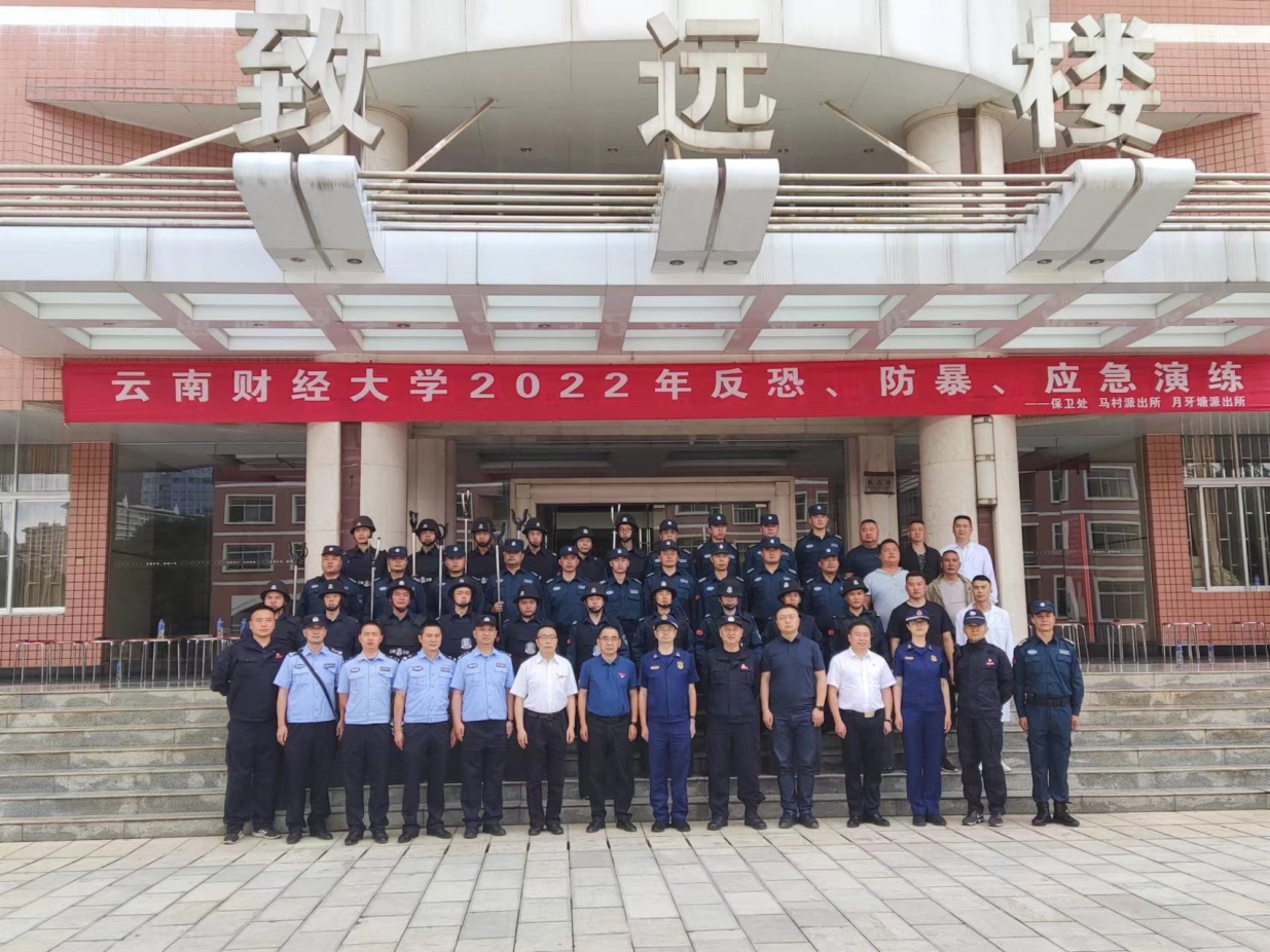 省教育厅安全稳定处、五华区莲华街道办事处、昆明市公安局五华分局治安大队、昆明市五华区消防救援大队、昆明市公安局交警一大队、昆明市公安局五华分局马村派出所、月牙塘派出所、云南众安保安服务有限公司以及学校突发事件应急处置工作领导小组成员单位负责人观摩并点评了演习活动。