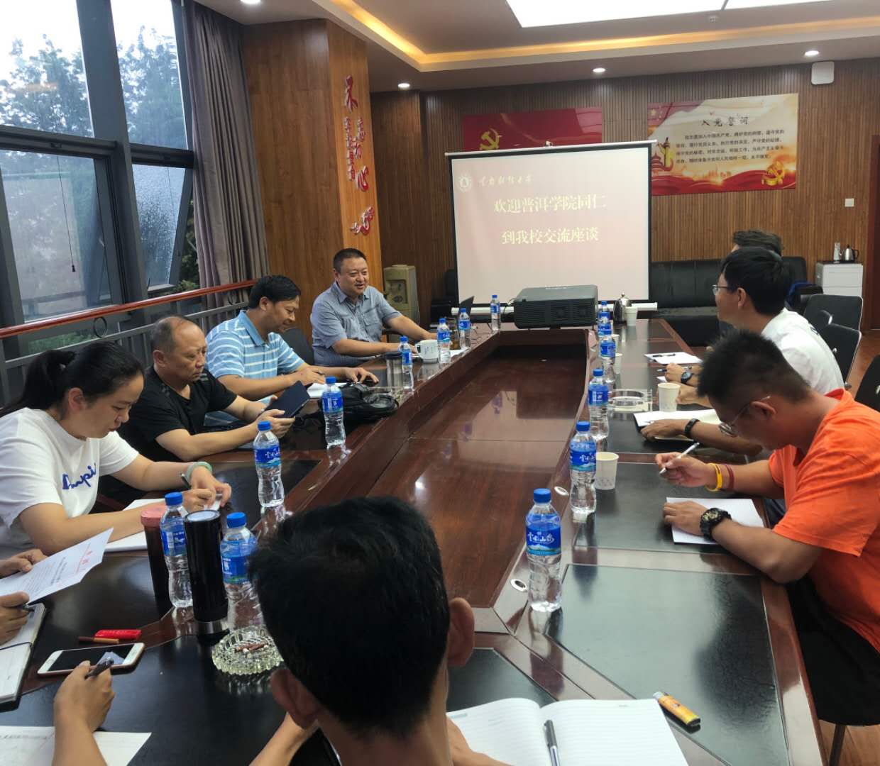 普洱学院保卫处处长介绍了其校保卫处概况、校区建设、安全工作的基本情况。随后,双方围绕学生安全教育、校园监控中心建设建设、经费投入、网络安全以及疫情防控等校园安全管理工作深入进行了探讨交流,相互学习、借鉴了高校安全保卫工作方面的好经验、好做法、好成果。