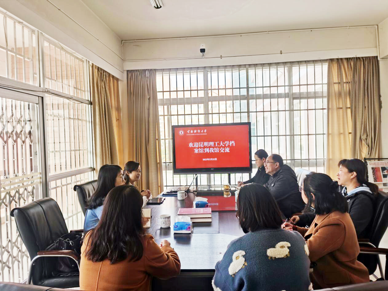 2月22日上午,昆明理工大学档案馆周荣馆长一行到买球档案馆就档案管理、校史编研、数字化档案馆开展调研交流。