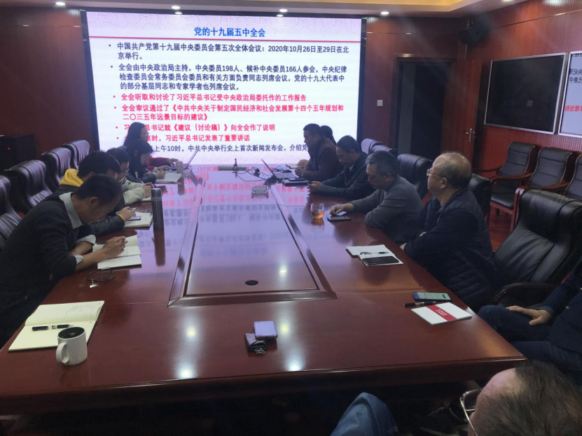白涛珍同志介绍了十九届五中全会的概况,并结合十九届五中全会公报,带领全体同志认真学习了《中共中央关于制定国民经济和社会发展第十四个五年规划和二〇三五年远景目标的建议》以及习近平总书记关于《中共中央关于制定国民经济和社会发展第十四个五年规划和二〇三五年远景目标的建议》的说明。学习过程中,全体人员着重围绕全面建设小康社会取得决定性成就、我国发展环境面临深刻复杂变化、“十四五”时期经济社会发展的六大主要目标以及二〇三五年九大远景目标、“十四五”时期实现目标的12项具体举措进行了重点学习。