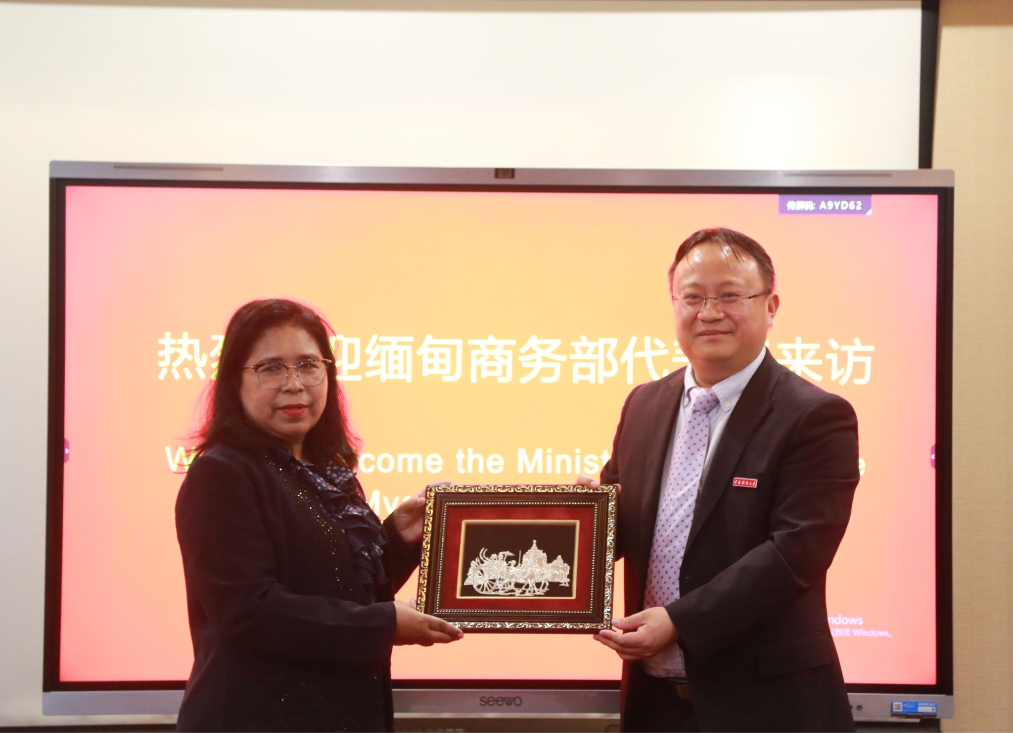 颜明介绍了十大买球官方网站以及国际交流工作的特色,特别是境外合作办学、援外教育项目等方面取得的成效。他表示,学校在软硬件技术支持、国际人才培训等方面均具备雄厚的实力和丰富的经验,作为南亚东南亚投资权益维护中心参与建设者之一,愿同缅方一起在知识产权保护方面开展深入合作,共同培养专业人才,助推缅甸知识产权事业的发展。