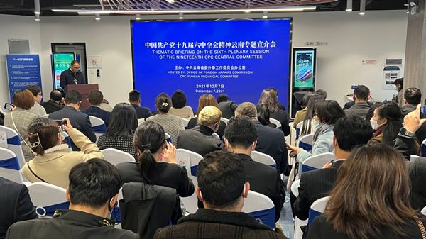 2021年12月7日,根据云南省科技厅的推荐和安排,学校对外合作交流处组织外籍专家、教师一行五人参加了由中共云南省委外办主办的“中国共产党第十九届中央委员会第六次全体会议精神云南专题宣介会”系列活动。