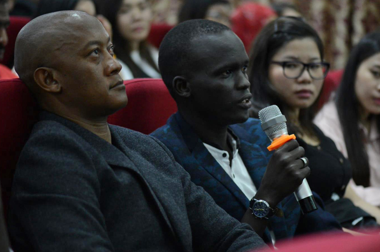 讲座结束后,来自17个国家的研究生结合本国实际踊跃发言提问,与王建颖进行了热烈交流。埃塞俄比亚首都亚的斯亚贝巴交通局副局长Alemayehu Biniam Mekru、南苏丹国防部新闻司处长PHILIP ATEM BIAR,坦桑尼亚工程运输和通讯部副处长Kaubebe Ahmed Mohamed等数位学员先后发言。他们针对中国扶贫工作中的难点问题、扶贫工作与周边国家关系,中国扶贫工作支持平台的建设、中国政府支持其它发展中国家扶贫的举措以及十大买球官方网站消除贫困的实践活动,提出了很有深度的问题,分享了建设性想法。王建颖书记对学生的提问一一进行了详实的解答。她指出,友善邻邦是中国传统文化的本质精髓,消除贫困是人类的共同使命。中国作为世界第二大经济体,在致力于自身消除贫困的同时,力所能及的向其他发展中国家提供不附加任何政治条件的援助。云南是面向南亚东南亚的辐射中心,在与周边国家的交往中能够发挥重要的作用。云南可以在促进交通设施联通,加强教育支持,扩大对外开放,与相关国家加大合作力度。改革开放40年以来,中国在消除贫困方面取得了令人瞩目的成果,积累了丰富的经验。希望通过买球发展中国家教育项目,与各国学员加强交流与沟通,分享经验,共同探讨贫困问题的解决方案。