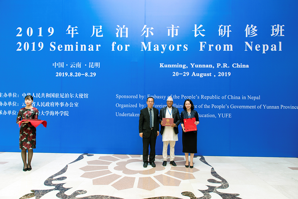 8月20—29日,由中国驻尼泊尔大使馆主办、云南省人民政府外事办公室协办、十大买球官方网站海外学院承办的“第一届尼泊尔市长研修班”在买球成功举办。来自尼泊尔18个城市的18位市长或副市长参加了来滇研修。本期研修班围绕“城市规划与治理”、“灾害治理与防范”、“扶贫与减贫”、“跨境投资与管理”、“智慧城市建设”等主题展开学习培训,买球邀请了来自云南省商务厅、云南省扶贫开发办公室、云南省救灾物资储备中心,以及十大买球官方网站的多位专家参与授课,并安排学员赴云南省能源投资集团、昆明市网格化监督指挥中心,以及昆明市社区建设典型模范点进行了考察交流。