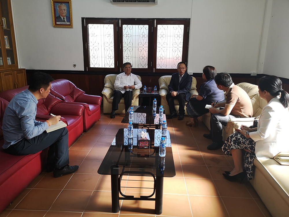 10月18日上午,项目组拜访老中合作委员会副主席垦通·西苏翁,海外学院院长余泳向恳通副主席报告了本次研修班的开展情况,本次活动在“一带一路”倡议下,进一步深化了“命运共同体”建设,研修班为老挝政府和中资企业搭建了一个交流的平台,增加老挝政府与中资企业之间的相互了解,帮助中资企业和政府快速对接。垦通副主席对研修班的工作予以了肯定,同时表示下一次可以邀请更多的部门共同参与讨论。就项目组提出的希望进一步在老挝深化培训一事,垦通表示将尽最大努力,全面支持培训落地,促进老挝人才培养和社会发展。