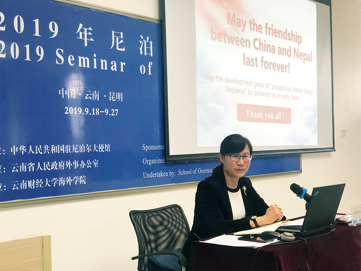 9月25日上午,学校党委书记王建颖以“消除贫困的中国方案”为题,为海外学院承办的2019年第二期尼泊尔市长研修班作专题讲座。