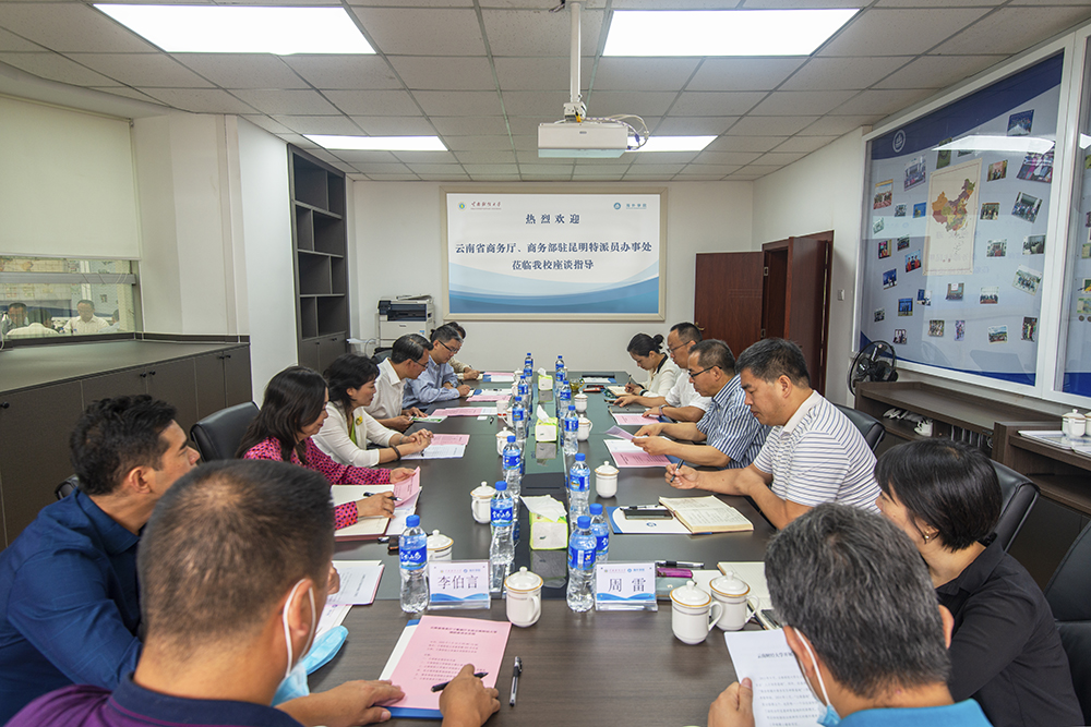 云南省商务厅对外经济合作处副处长彭少峰,调研员吴芳、李伯言、一级主任科员周雷,云南国际经济技术交流中心副主任李荣康、办公室主任魏娜,以及买球海外学院副院长李来孺、办公室负责人王小帆参加座谈。