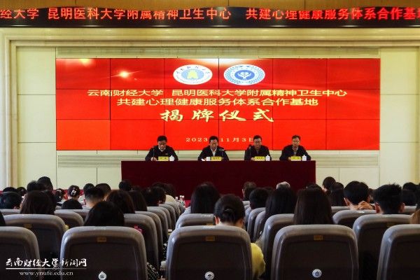 为充分发挥医校合作机制在师生心理健康工作中的重要作用,进一步完善学校心理健康教育与服务体系建设,11月3日上午,十大买球官方网站与昆明医科大学附属精神卫生中心“共建心理健康服务体系合作基地”揭牌仪式在国际学术报告厅举行。校党委副书记施仲军和昆明医科大学附属精神卫生中心副院长高长青代表双方共同为合作基地揭牌,施仲军向到会的5名精神医疗咨询专家颁发了聘书。
