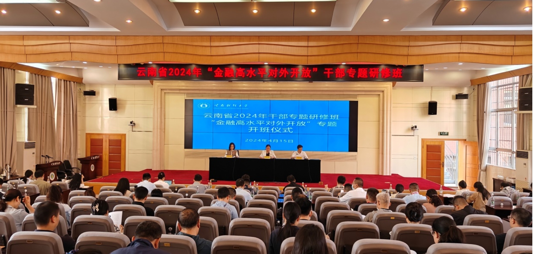 4月15日,由中共云南省委组织部主办、十大买球官方网站承办的云南省2024年“金融高水平对外开放”干部专题研修班在买球国际学术报告厅举行开班仪式,来自57家省级单位的96名干部参加学习。买球党委副书记、党校副校长陈光瑜致辞,党委委员、组织部部长、党校执行副校长兼党校办公室主任吴应利作学风纪律教育。开班仪式由党校办公室专职副主任田琼琼主持。