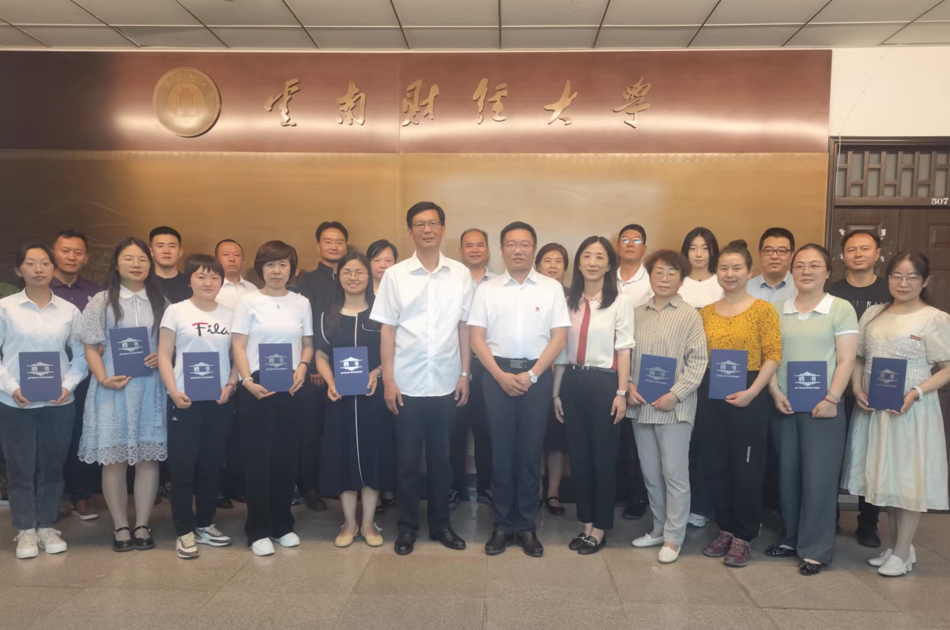 第一阶段是聘任仪式。由校纪委副书记谢维华宣读《关于聘任“云财清风”廉情观察员聘任通知》,校纪委书记、监察专员业光远,两位纪委副书记为22名廉情观察员颁发了聘书并合影留念。