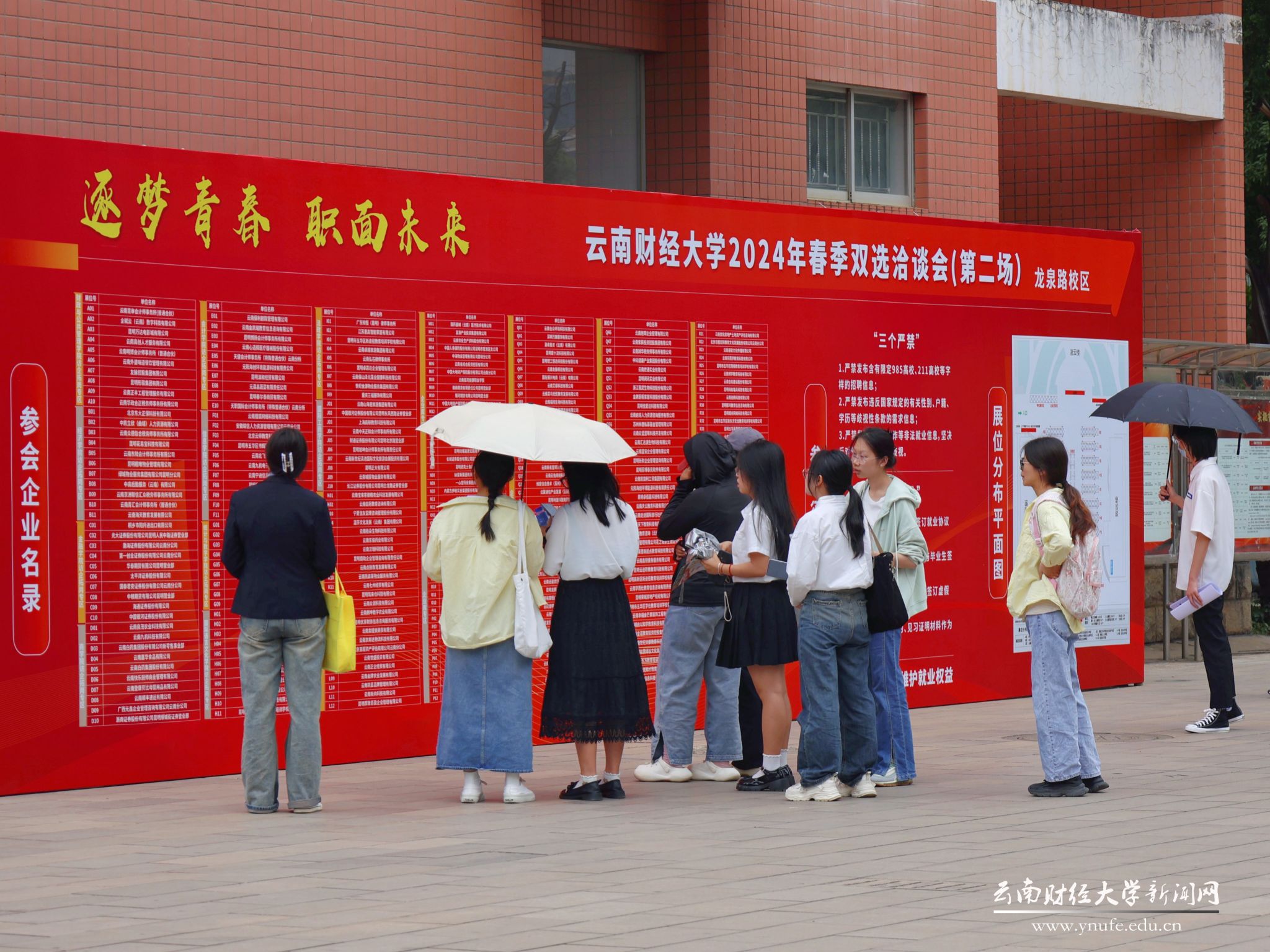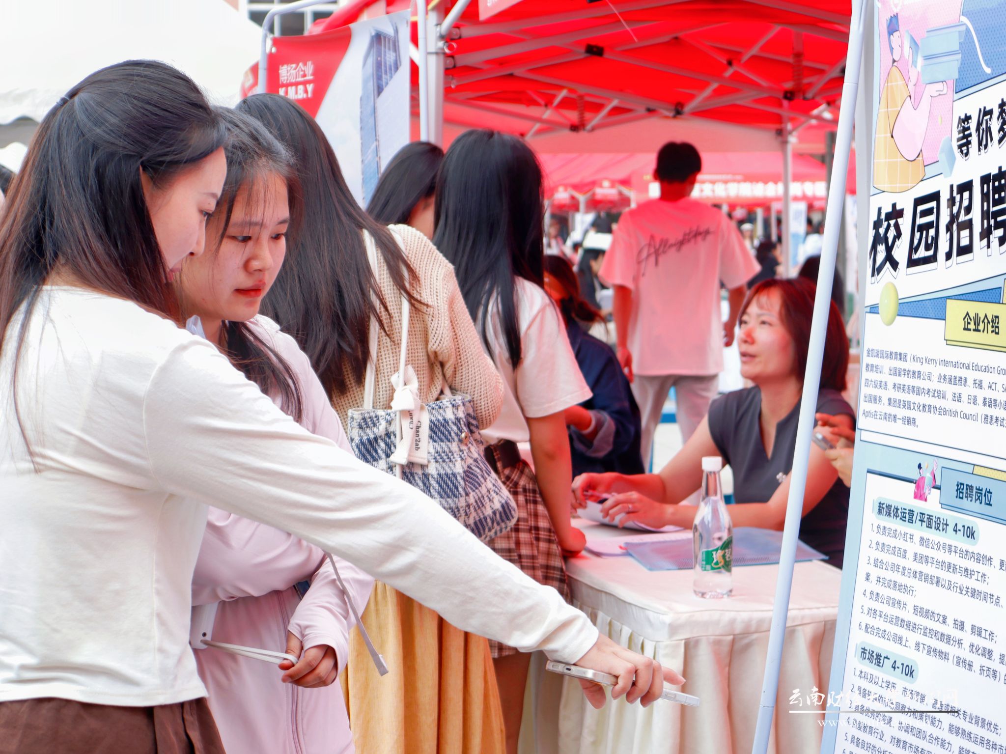 此次招聘会由学校联合昆明市五华区人力资源和社会保障局、昆明市安宁市人力资源和社会保障局共同主办,十大买球官方网站招生与职业发展中心、昆明市五华区公共就业和人才服务中心、昆明市安宁市公共就业和人才服务中心承办,云南省工商业联合会(总商会)、云南省总商会人力资源服务中心、云南人才市场、云南省高校毕业生就业促进会、安宁市太平商会、云南省药品流通行业协会、智联招聘、前程无忧协办。