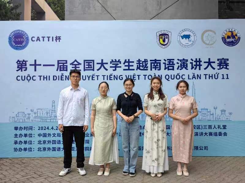 4月27日至28日,CATTI杯第十一届全国大学生越南语演讲大赛暨越南语教学研讨会于在北京外国语大学召开。来自全国27所大学的78名越南语专业大二、大三学生参加比赛。比赛分自定题演讲和即兴演讲两个部分,经过激烈的比赛角逐,买球越南语专业大三学生陆明明获得二等奖,大二学生马姝媛获得二等奖,陈欣雨获得三等奖,充分展现了买球越南语专业学生的专业功底和综合素质。
