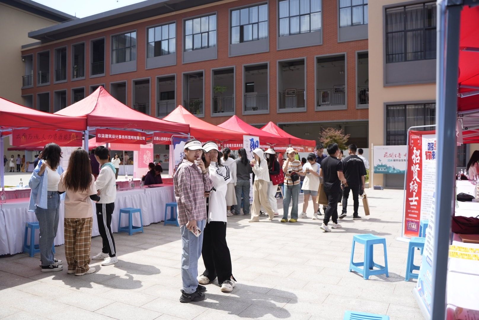 来自云南大学、昆明理工大学、云南民族大学等13所高校和丘北县、马关县、峨山县、安宁市等多家政府机构,以及云南网、昆明粮油集团、中科嵘创(深圳)科技有限公司、昆明市青年企业家商会等52家企业的代表共计200余人参加毕业展及招聘会。