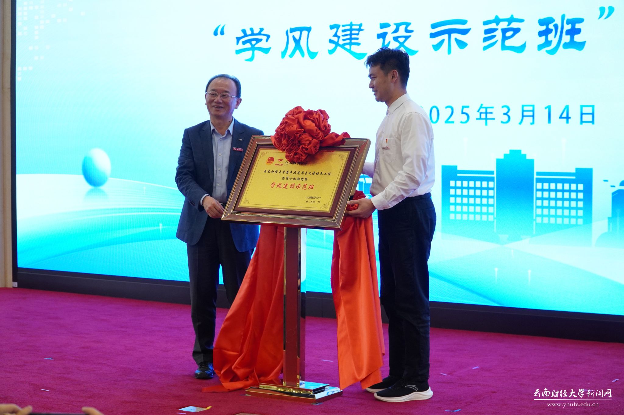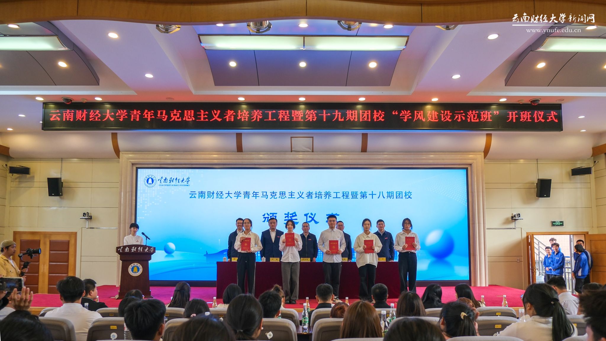 3月14日下午,十大买球官方网站青年马克思主义者培养工程•第十九期团校暨“学风建设示范班”开班仪式在龙泉路校区国际学术报告厅举行。学校党委书记陈红教授为云财青年开讲2025年春季学期“开学第一课”并为青马班首个“学风建设示范班”揭牌。