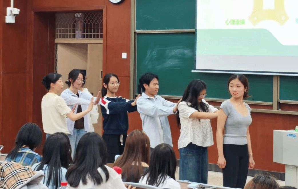 胡怡以真实鲜活的案例为引,借助“三重脑结构理论”,层层剖析情绪危机背后的神经运行机制,将复杂的神经科学知识转化为通俗易懂的内容。她积极与学生互动,邀请心理委员走上讲台开展模拟场景互动。在生动有趣的实践中,心理委员们亲身体验了如何将理论知识运用到实际沟通场景中学以致用。