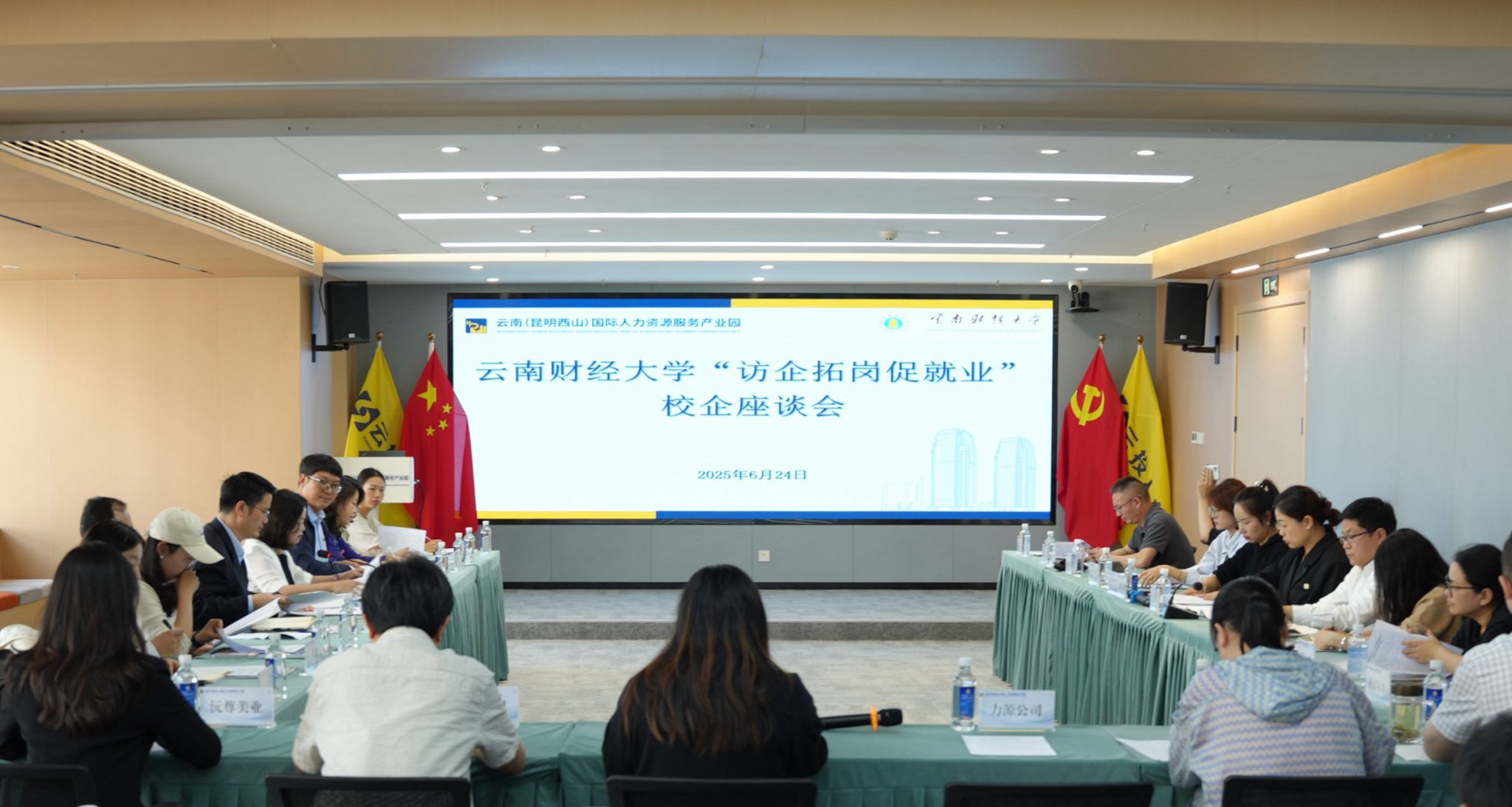 为进一步推进产教融合、拓宽毕业生就业渠道,多措并举促进毕业生高质量就业,6月24日,校党委委员、副校长李正彪率队赴云南(昆明西山)国际人力资源服务产业园,与云南人力资源开发有限责任公司、云南猎聘网络科技有限公司、云南滇昆人力资源服务有限公司等14家企业开展访企拓岗校企交流。座谈由商学院党委书记王敏主持。