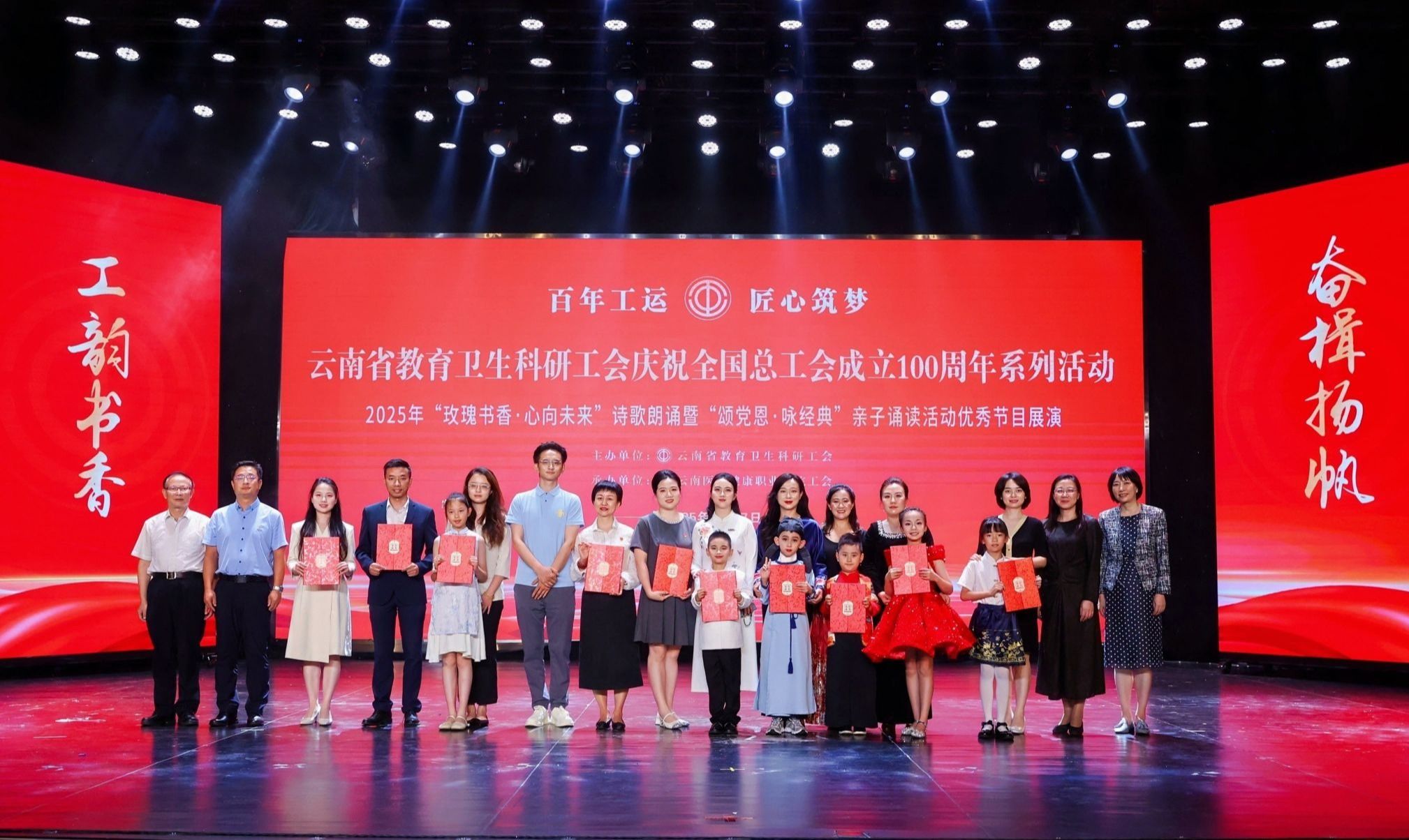 7月17日,在云南省教育卫生科研工会主办的“玫瑰书香·心向未来”诗歌朗诵暨“颂党恩·咏经典”亲子诵读决赛中,买球国际语言文化学院教师车晓昱家庭凭借《诗意中国》的精彩演绎脱颖而出,不仅摘得亲子诵读一等奖第一名,更受邀参加优秀节目展演,生动展现了买球教师家庭的良好精神风貌与深厚文化素养。