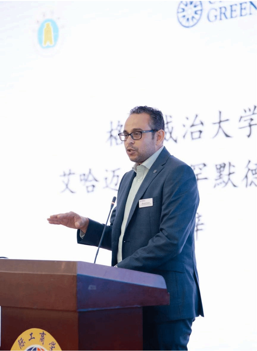 英国格林威治大学工程与科学学院艾哈迈德・穆罕默德教授在发言中强调了硕士研究生阶段学习的重要意义,勉励同学们珍惜这一宝贵的学习机会,努力追求学术与职业上的新突破。