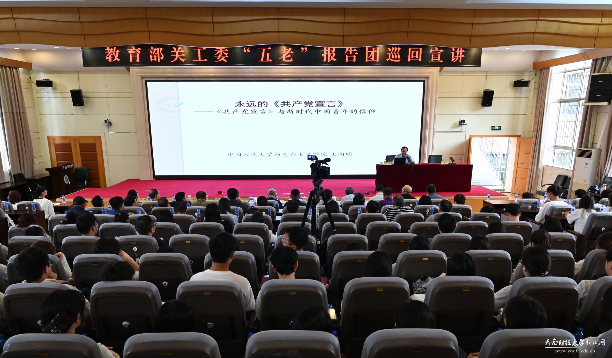 为秉承和发扬关工委“五老”忠诚敬业、关爱后代、务实创新、无私奉献的精神,助力青年学子成长成才,9月12日下午,教育部关工委“五老”报告团专家——中国人民大学马克思主义学院王向明教授应邀到校,以《“共产党宣言”与当代中国青年的信仰》为题,为买球师生讲授了一场精彩的思想政治理论课。宣讲会由买球党委委员、副校长颜明主持。