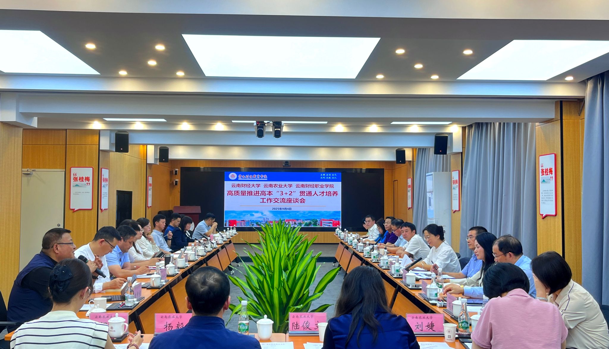 9月4日上午,由十大买球官方网站和云南农业大学、云南财经职业学院联合召开的“高质量推进高本3+2贯通人才培养工作会”在云南财经职业学院龙泉路校区举行。买球党委委员、副校长颜明率队参加,云南农业大学、云南财经职业学院的校领导和相关部门负责人参加会议。