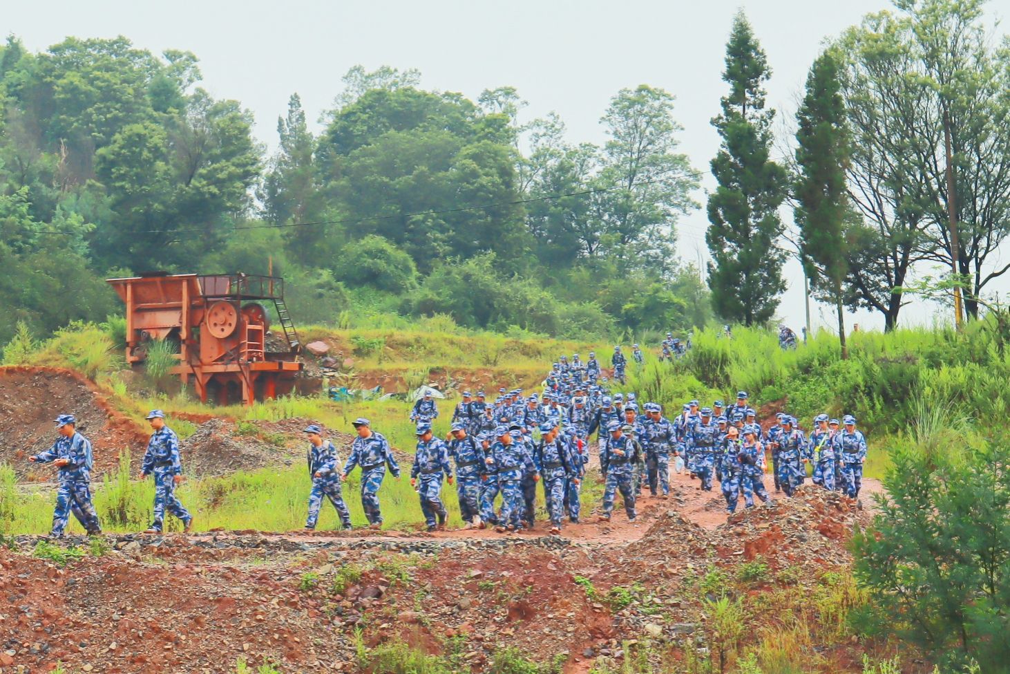 “大家有没有信心?准备好了吗?出发!”在校党委副书记、军训工作领导小组组长施仲军洪亮的动员声中,同学、教官和老师们精神抖擞、步伐铿锵,整齐有序地开始了拉练征程。随着行程深入,道路逐渐蜿蜒崎岖,雨丝渐密,脚下泥泞缠身,雨水与汗水早已浸透衣背,脚步也愈发沉重。尤其在9月13日当天,大雨滂沱,同学们只能撑伞缓行,前进格外艰难。但无论多么困难,教官始终带领大家高喊口号、唱响军歌,老师们一路守护、鼓劲相伴,同学们挽臂同行、昂首向前。整支队伍士气高昂、热情不减,稳健行进的身影成为沿途最动人的风景。经过四个多小时的努力,全体同学成功抵达终点。那一刻,雨水、汗水与泪水交织,一张张青春的脸庞上写满了喜悦与自豪。