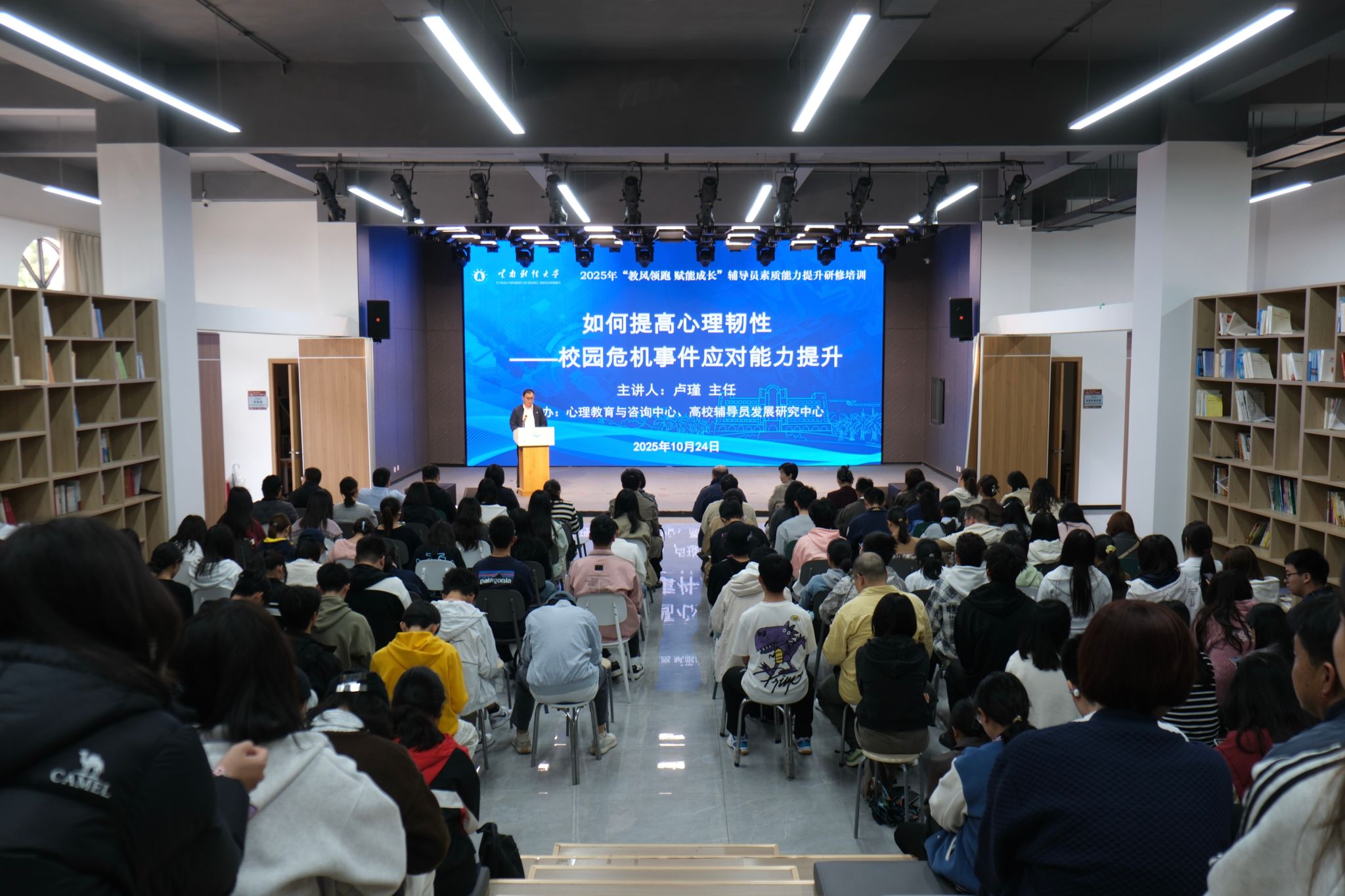 为进一步提高辅导员队伍和学生对心理问题的认识,传播心理健康知识,根据全省心理健康知识讲座巡讲工作安排,10月24日,昆明医科大学第一附属医院精神科主任卢瑾教授应邀到学校开展“如何提高心理韧性——校园危机事件应对能力提升”专题培训。培训由省卫生健康委员会、省教育厅、省总工会主办,买球学生处承办。学生服务中心专职副主任、学生工作部副部长王帅主持培训会。
