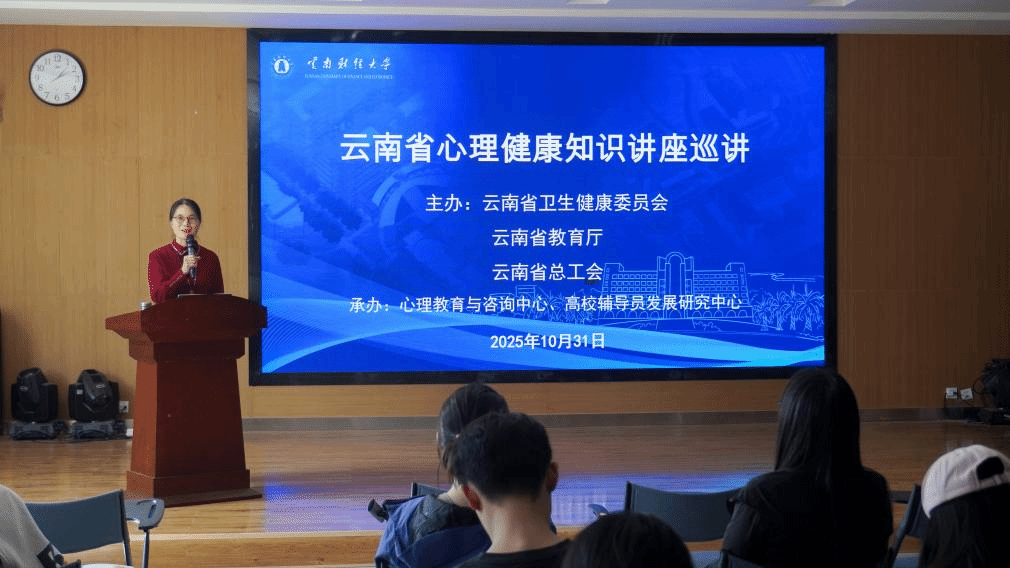 10 月 31 日,全省心理健康知识讲座巡讲第二讲在买球举行,云南省心理卫生中心东寺街门诊部主任、精神科主任医师戴敏应邀以 “心理问题助人技能:校园危机事件应对能力提升”为题,为买球安宁校区 300 余名辅导员及班级心理委员开展培训。活动由省卫生健康委员会、省教育厅、省总工会主办,买球学生处承办。