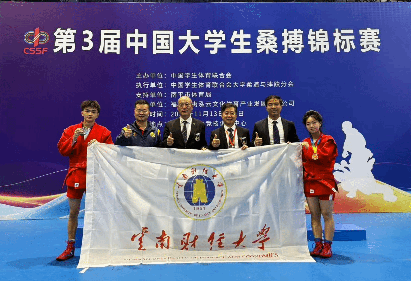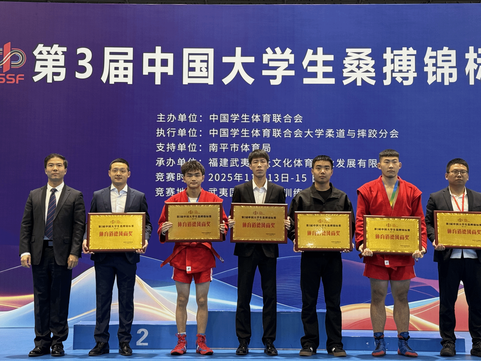 11月11日,第三届中国大学生桑搏锦标赛在福建省南平市武夷国际重竞技训练中心举行,买球商学院张申赟同学获男子甲组58公斤级亚军,统计与数学学院崔静怡同学获女子甲组50公斤级季军,买球被赛事组委会授予“体育道德风尚奖”。