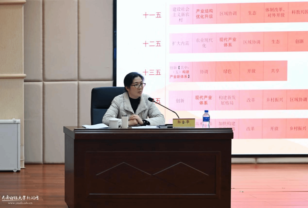郭金华围绕“构建现代化产业体系”主题,深入解读了党的二十届四中全会相关战略部署。她结合历次五年规划的战略演进,系统阐释了现代化产业体系的战略定位与实施路径,从中华民族伟大复兴战略全局和世界百年未有之大变局的宏观背景出发,分析了加快构建以先进制造业为骨干的现代化产业体系的重大意义。报告还结合云南产业发展实际,回顾了云岭大地奋进跨越的历程,阐释了当前云南产业发展的“变”与“进”、“形”与“势”,并围绕学习贯彻习近平总书记考察云南重要讲话精神,阐述了加快构建具有云南特色和优势的现代化产业体系的实践路径。