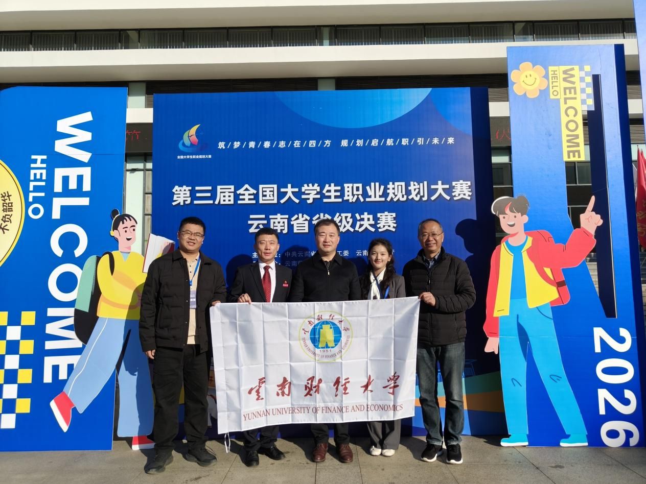 1月12日至14日,第三届全国大学生职业规划大赛云南省决赛在云南师范大学举行,由崔海浪、陆丹、王芳、庞春平、霍嘉军组成的教学团队荣获教学赛道金奖,旅游与酒店管理学院会展23-1班杨健萍同学荣获成长赛道高教组铜奖。买球副校长余怒涛出席颁奖典礼。