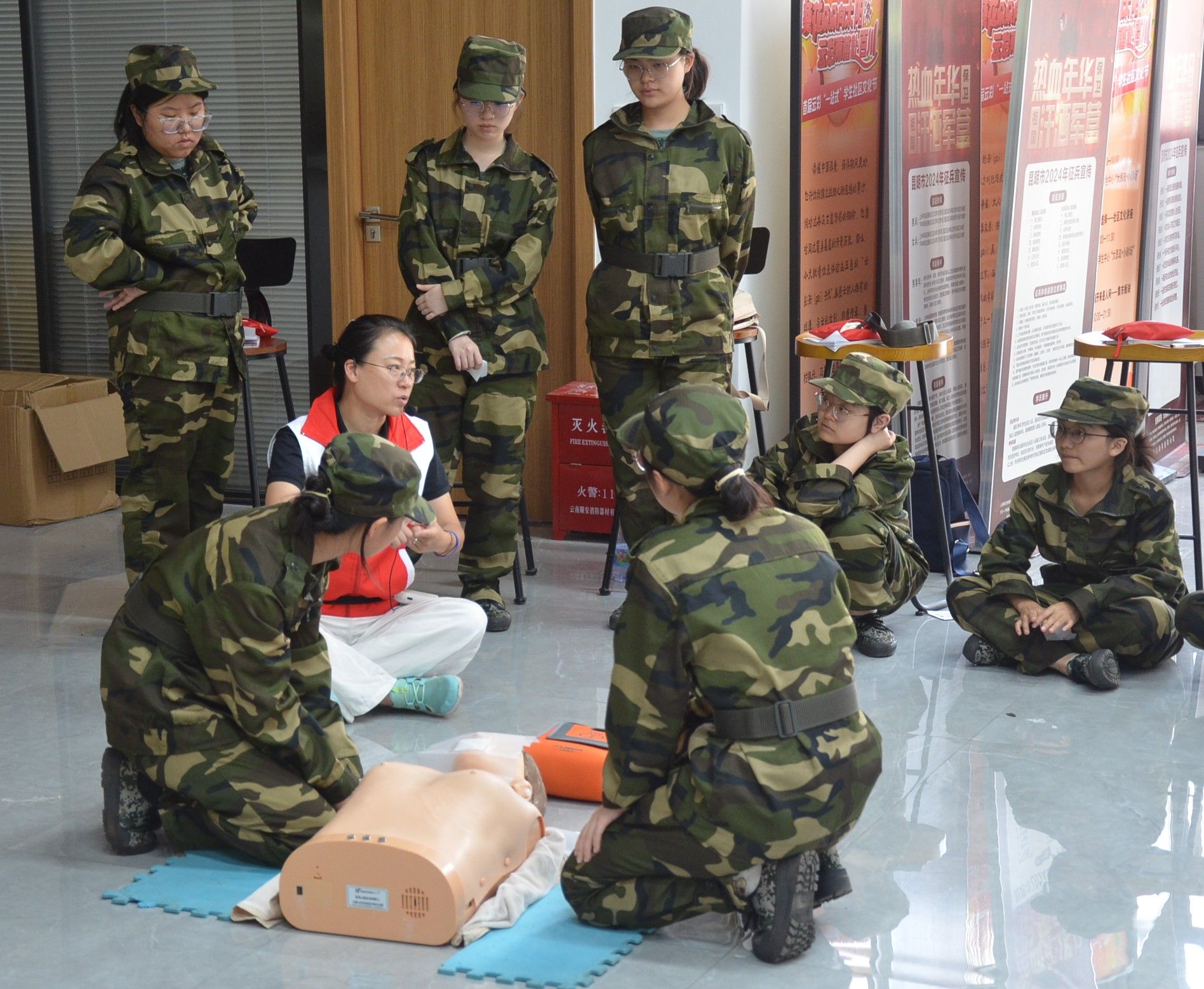 云南省红十字应急救护培训中心的老师们结合专业知识和生动详实的案例,围绕红十字基本知识、救护概论、创伤救护、心脏复苏与AED使用、气道异物梗阻急救、防灾减灾避险逃生知识等内容展开知识讲解和急救实操训练。