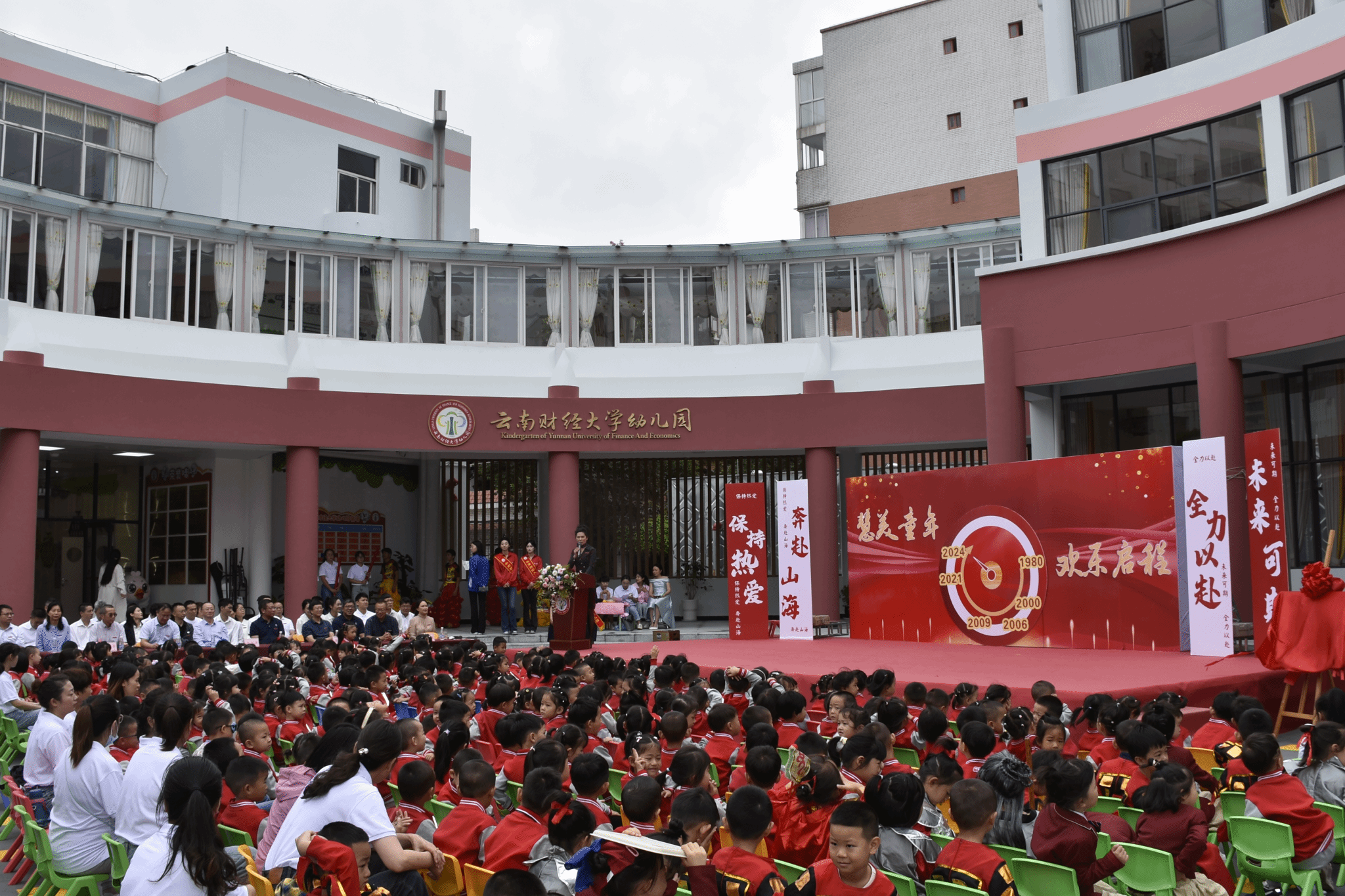 秋光为序,慧美启程。在第40个教师节即将来临之际,9月9号上午,十大买球官方网站幼儿园隆重举行“慧美童年 欢乐启程”新园区开园仪式暨2024秋季学期开学典礼。校党委书记陈红,校纪委书记、监察专员业光远出席并为财大幼儿园新园区揭牌,校党委委员、副校长颜明宣布财大幼儿园新园区开园。后勤产业集团总经理李光香主持仪式。