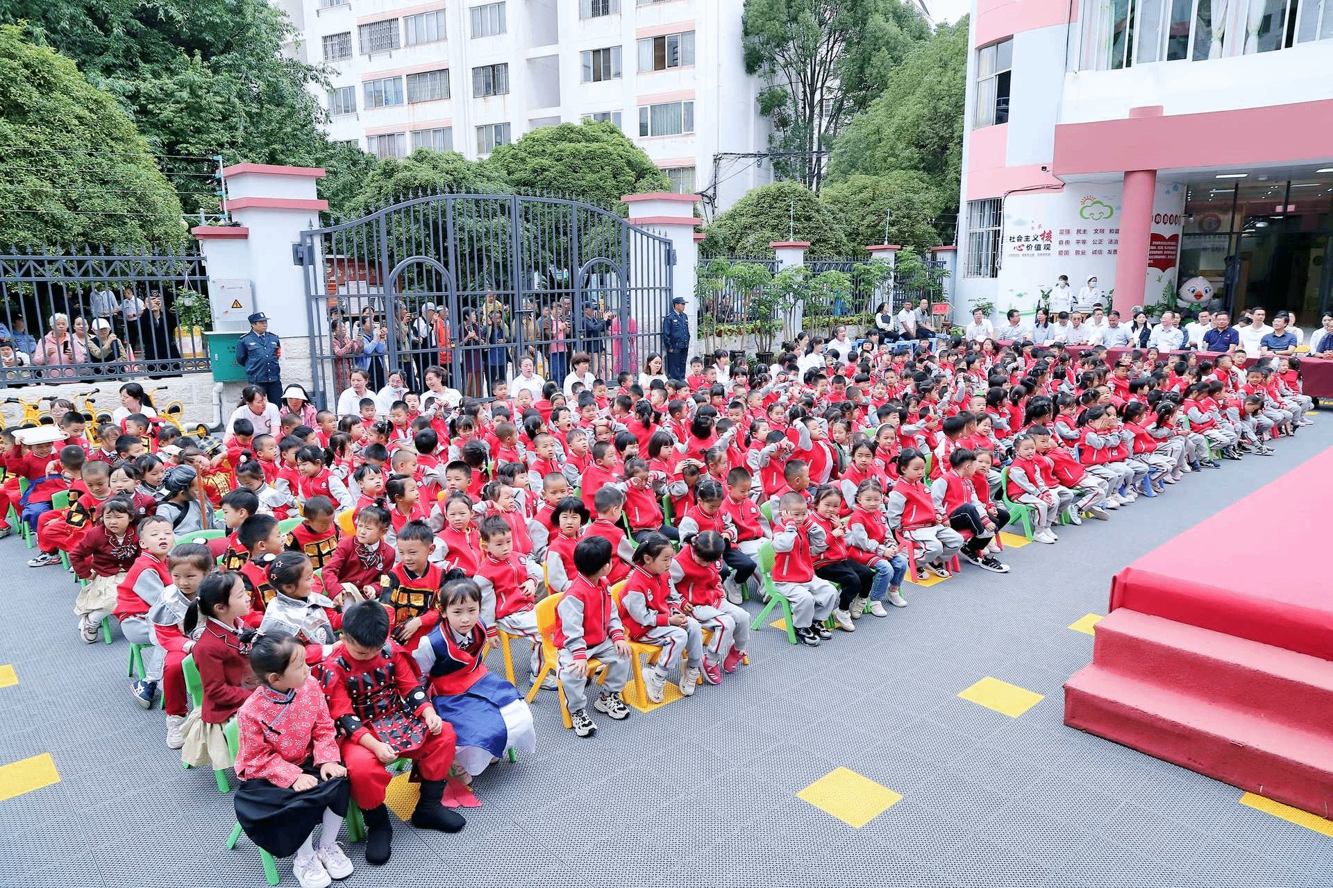 陈红对幼儿园全体教职工致以教师节的亲切问候和美好祝愿,对新园区正式开园表示热烈祝贺,并对幼儿园近年来取得的喜人成绩表示认可和肯定。他对幼儿园建设发展提出三点希望:
