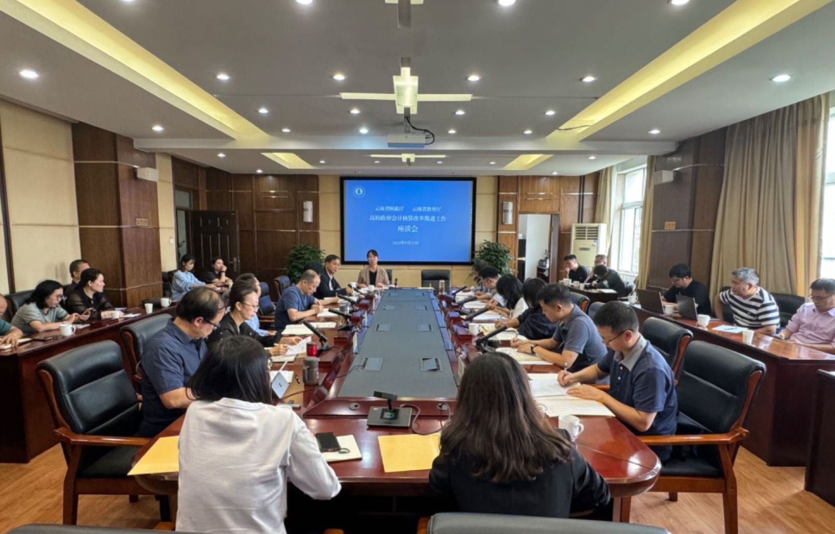为加快推进高校政府会计核算管理改革,实现高校现有财务系统与云南省预算单位会计核算系统的有效衔接,9月23日,省财政厅国库处(国库支付中心)、科教文化处、财政数据网络中心,省教育厅财务基建处、云南省电化教育馆和云南省教育会计学会到学校开展高校政府会计核算改革推进工作座谈会。学校副校长彭强出席座谈会,会议由省教育厅财务基建处副处长罗蓉蓉主持。