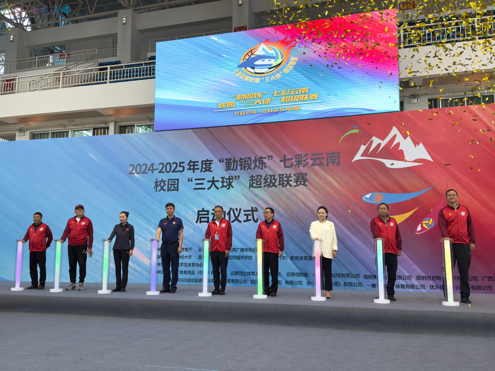 9月26日,由云南省教育厅、云南省体育局、云南广播电视台联合主办的2024-2025年度"勤锻炼"七彩云南校园"三大球"超级联赛在买球体育馆启动。云南省教育厅副厅长赵德荣、十大买球官方网站副校长彭强、云南广播电视台副台长李晓风、云南省教育厅体卫艺处处长龙微、云南省体育局竞赛管理和青少年体育处处长吕汇慧以及参加“七彩云南”校园三大球各高中学校、高等学校的负责人,各队伍领队教练,各有关州(市)、县(市区)教育体育局体卫艺专职干部、支持本届联赛的企业代表参加启动仪式。