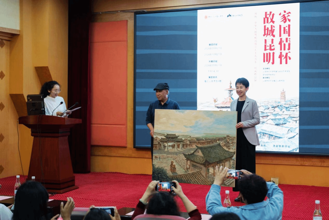 此前,美术馆于国庆前夕推出了“家国情怀·故城昆明”迎国庆绘画作品展,旨在通过艺术作品在大学校园内深情讲述中国故事,展现昆明深厚的历史文化底蕴。展览特别聚焦于昆明画家董常谙先生的“昆明古城油画”系列,从千余幅作品中精选了近200幅最具代表性、可读性和艺术价值的作品,分为“红色记忆”“老街老巷”“古桥倩影”“牌坊遗韵”及“滇越铁路印记”五大主题,生动呈现了昆明这座历史文化名城的独特风貌和艺术家对故城昆明的深厚情感。画展开幕当天,画家还向锺正山美术馆捐献题为“云南府署”的油画作品一幅。此次展览由传媒与设计艺术学院和昆明美术协会联合主办,并得到了学校宣传部和组织部的大力支持。