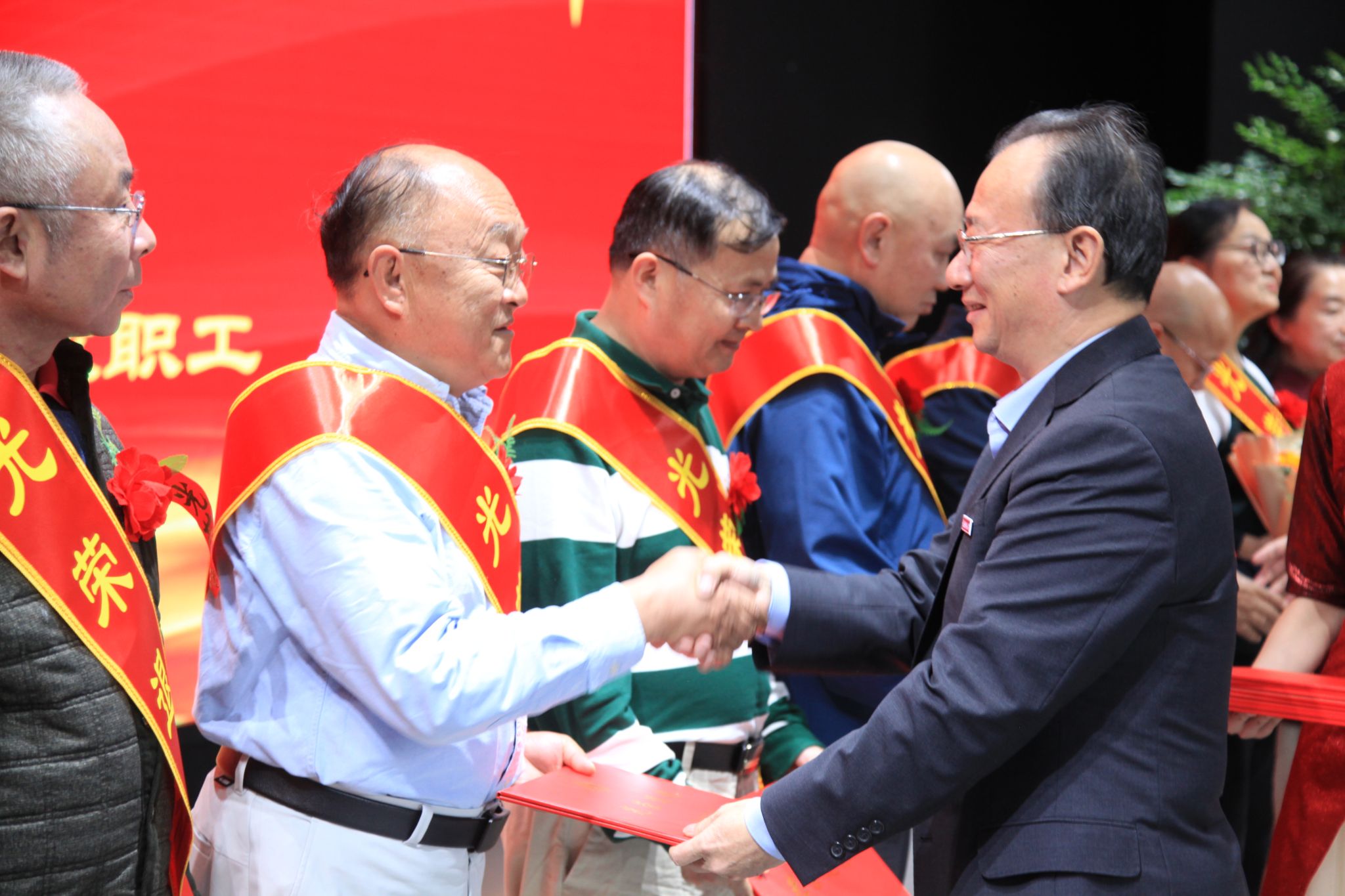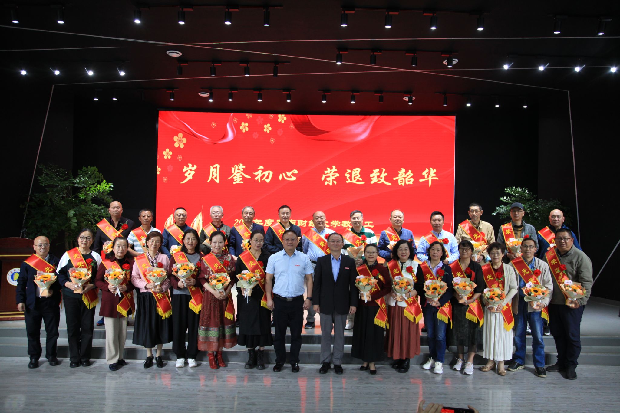 学校2023年7月—2024年9月期间退休的教职工,办公室、组织部、宣传部、人事处、校工会负责人,新退休教职工所在单位负责人和教职工代表,离退休教职工代表,学生代表共180余人参加仪式。