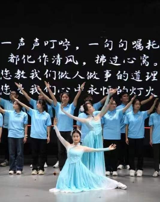 在新老教师交接仪式上,李旭老师郑重地为新教师梁雅爽佩戴校徽,并赠送《新时代高校教师职业行为十项准则》。云财老年大学男声合唱团演唱了《把一切献给党》,学生代表演唱了歌曲《如愿》。