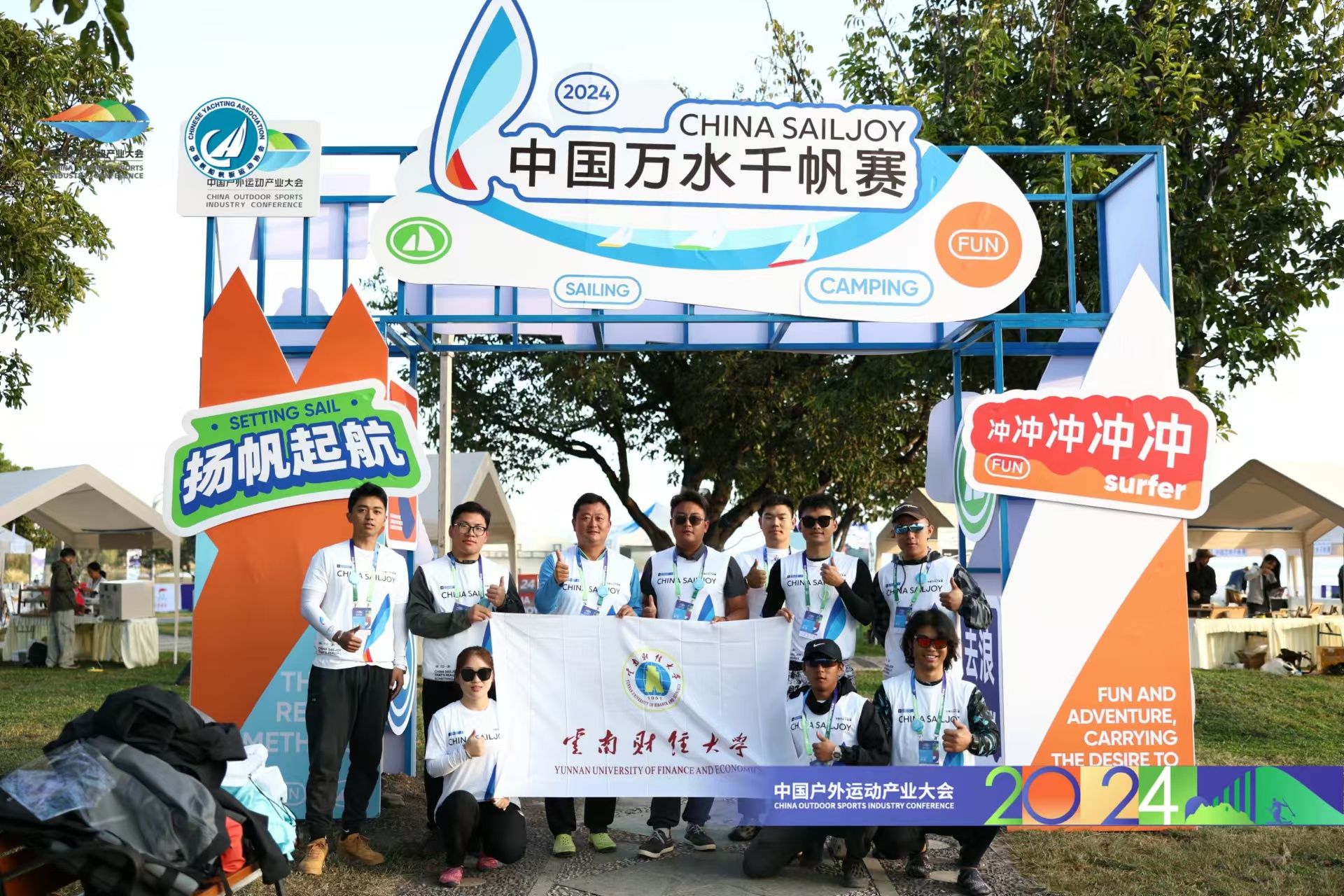 大会期间,胡海彦看望了参加2024中国户外运动产业大会·中国万水千帆赛(大理站)的买球帆船队队员,鼓励他们大力弘扬体育精神,充分展示云财学子的良好风貌。