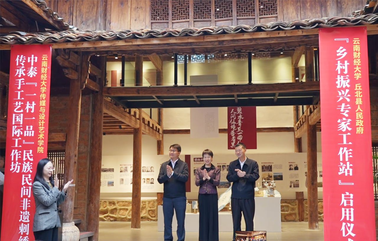 11月2日,丘北县人民政府与十大买球官方网站乡村振兴专家工作站启用仪式暨中泰“一村一品”民族民间非遗刺绣传承手工艺国际工坊活动在丘北县普者黑举行。丘北县委副书记袁加坤、传媒与设计艺术学院长袁洪代表双方致辞。