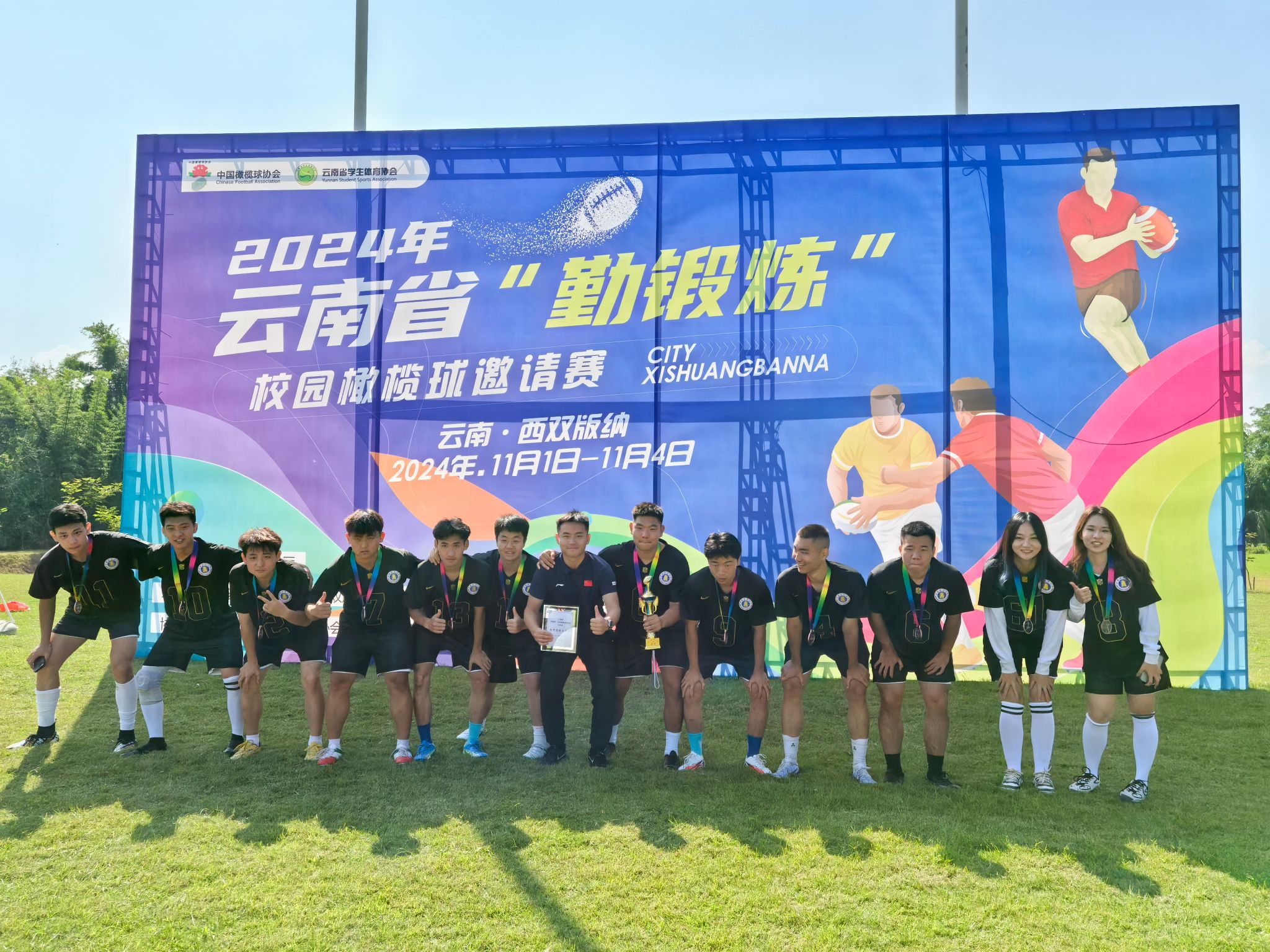 11月1至4日,2024年云南省“勤锻炼”校园橄榄球邀请赛在西双版纳举行。买球橄榄球队首次出征参赛,荣获大学组第三名以及体育道德风尚奖。