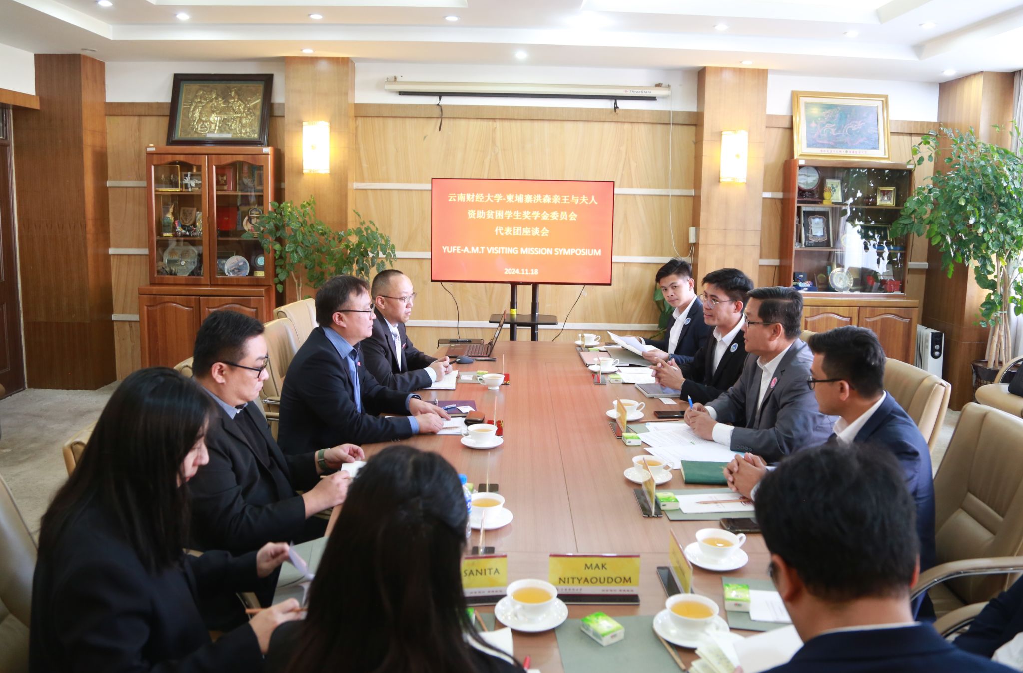 11月18日下午,柬埔寨洪森亲王与夫人资助贫困学生奖学金委员会(A.M.T)副主任H.E.HENG SOTHY一行6人,在柬埔寨王国驻昆明总领事馆领事SIV LIMANN的陪同下到访买球。校党委委员、副校长颜明会见来宾并举行座谈,对外合作交流处处长、海外学院院长余泳,曼谷商学院执行院长马艺参加座谈。