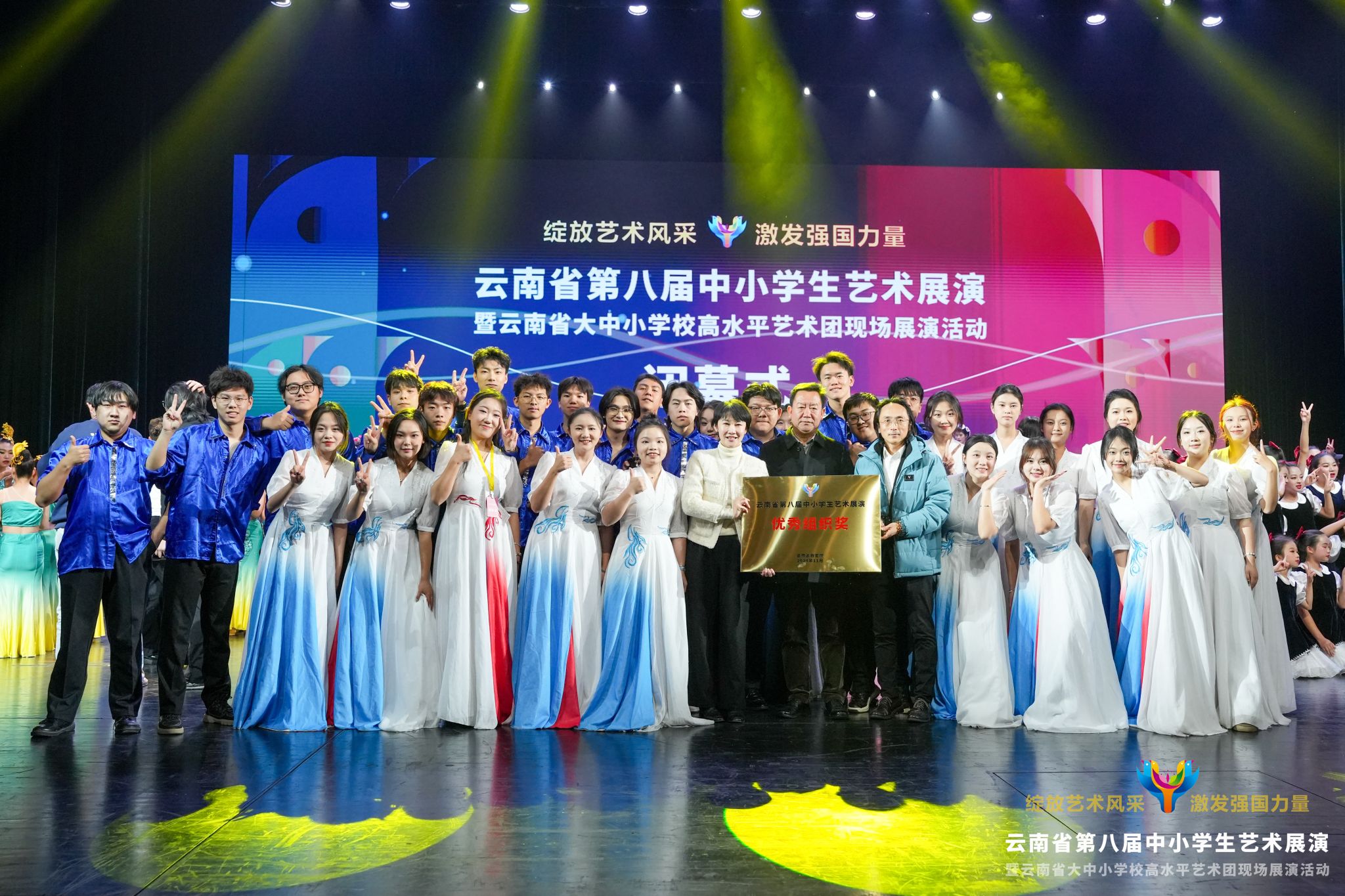11月29日,云南省第八届中小学生艺术展演暨云南省大中小学校高水平艺术团现场展演活动正式闭幕。本次活动由云南省教育厅主办,十大买球官方网站作为承办高校获优秀组织奖。买球党委副书记施仲军出席活动并代表十大买球官方网站领奖。校团委杨波老师带队的大学生艺术团作为高水平艺术团参与了现场表演,在闭幕式上表演了《山寨春色》和《山寨狂歌》两首曲目。
