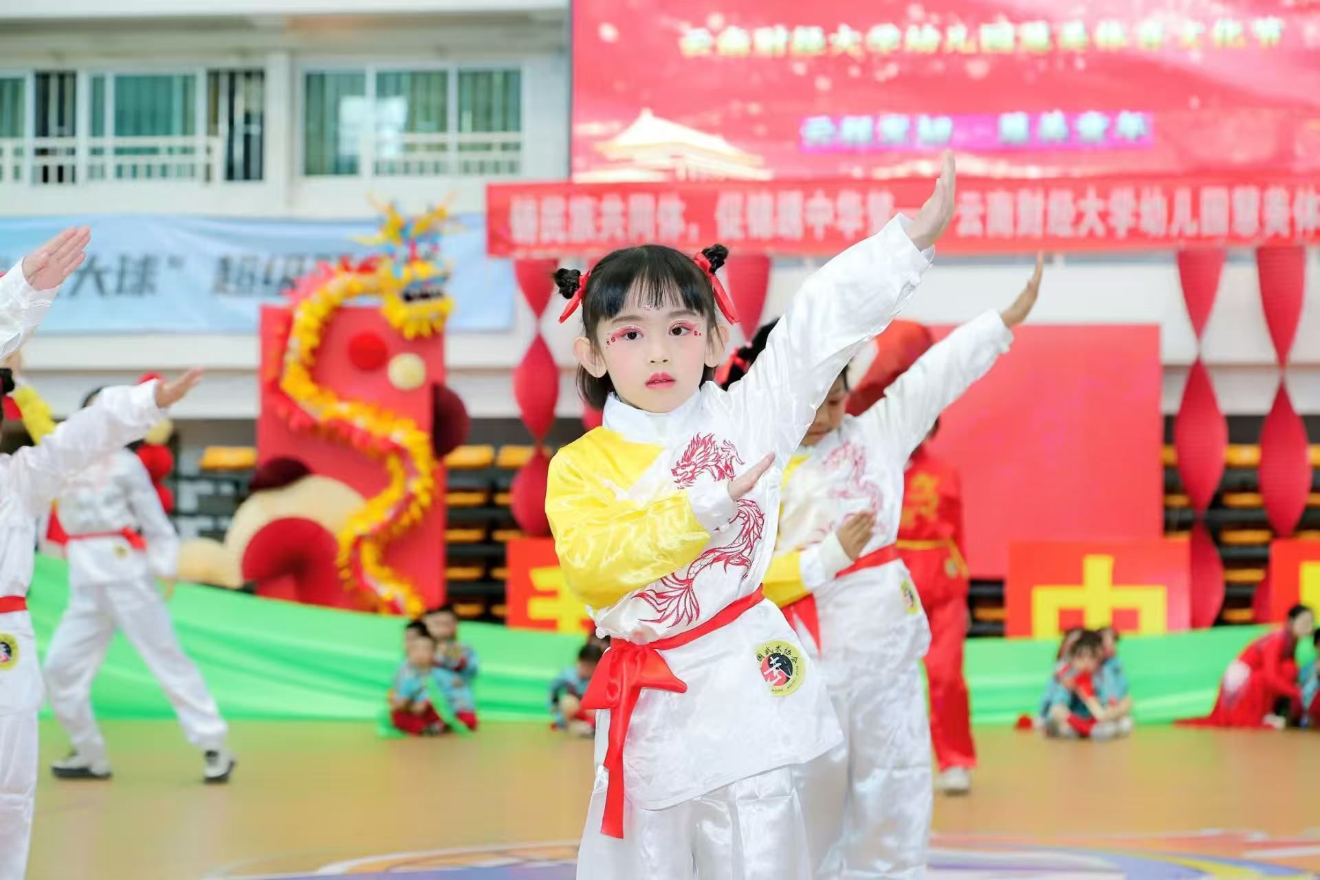 活动以幼儿园教师表演的节目《我爱你,中国》拉开序幕,各班级方队依次入场进行特色展演。孩子们个个精神饱满、神采奕奕,分别表演了《功夫娃娃中国梦》《龙腾狮跃耀中华》《滇韵盛世》等节目,展示了中华传统文化和民族文化特色,赢得阵阵热烈掌声。