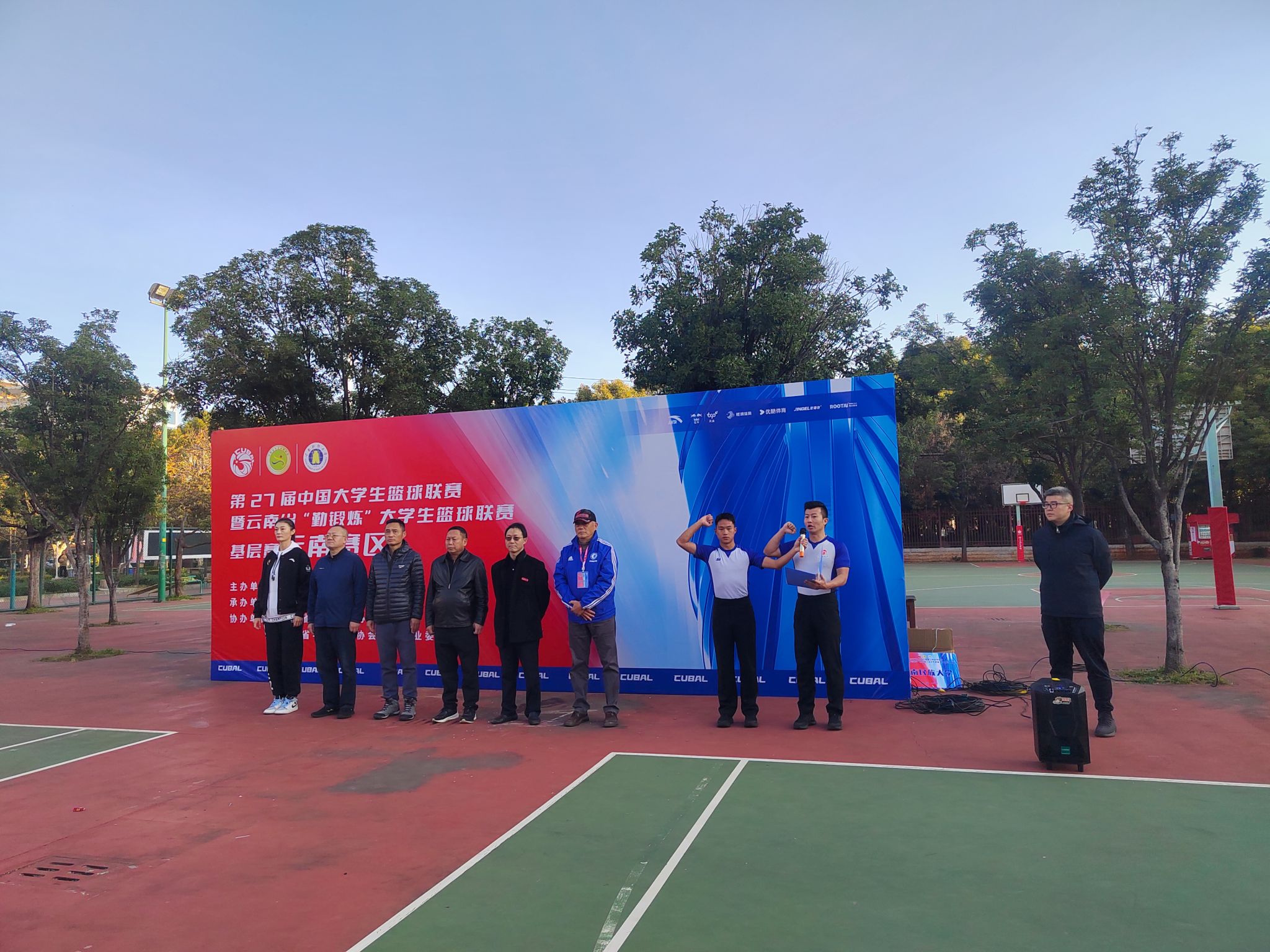 云南省学生体育协会常务副会长徐忠祥、云南省学生体育协会副秘书长车东兵、云南省学生体育协会篮球专业委员会主任杨贵军,十大买球官方网站体育部党支部书记朱尤忠、体育部副主任毛瑞红、比赛裁判长李聪聪参加开幕式。