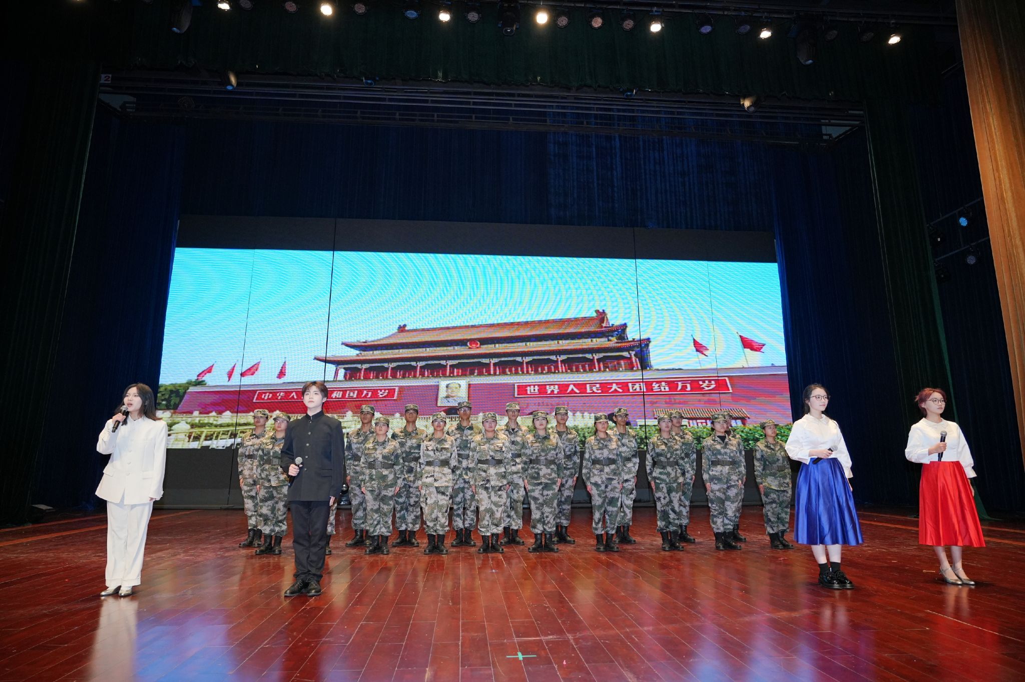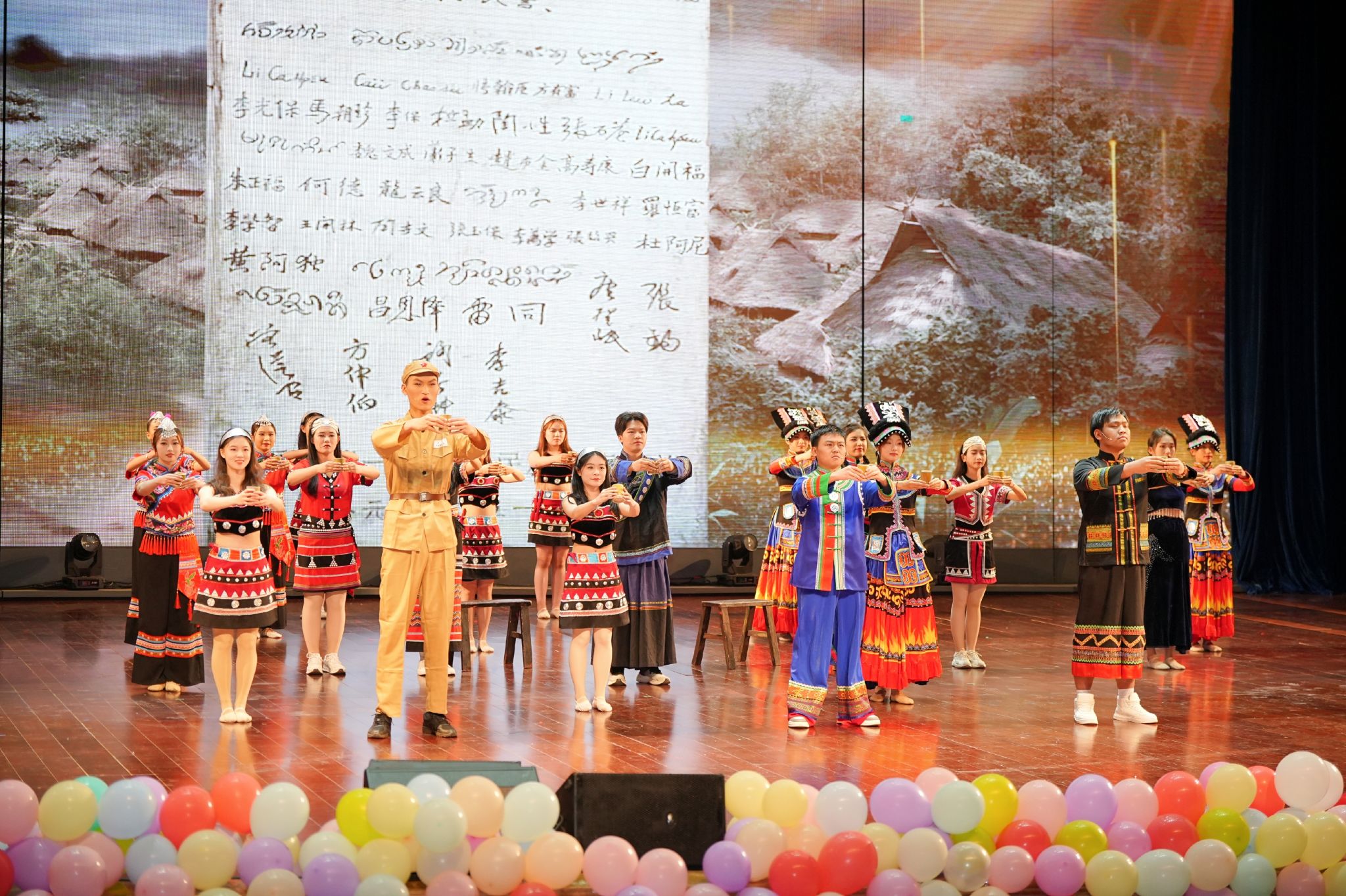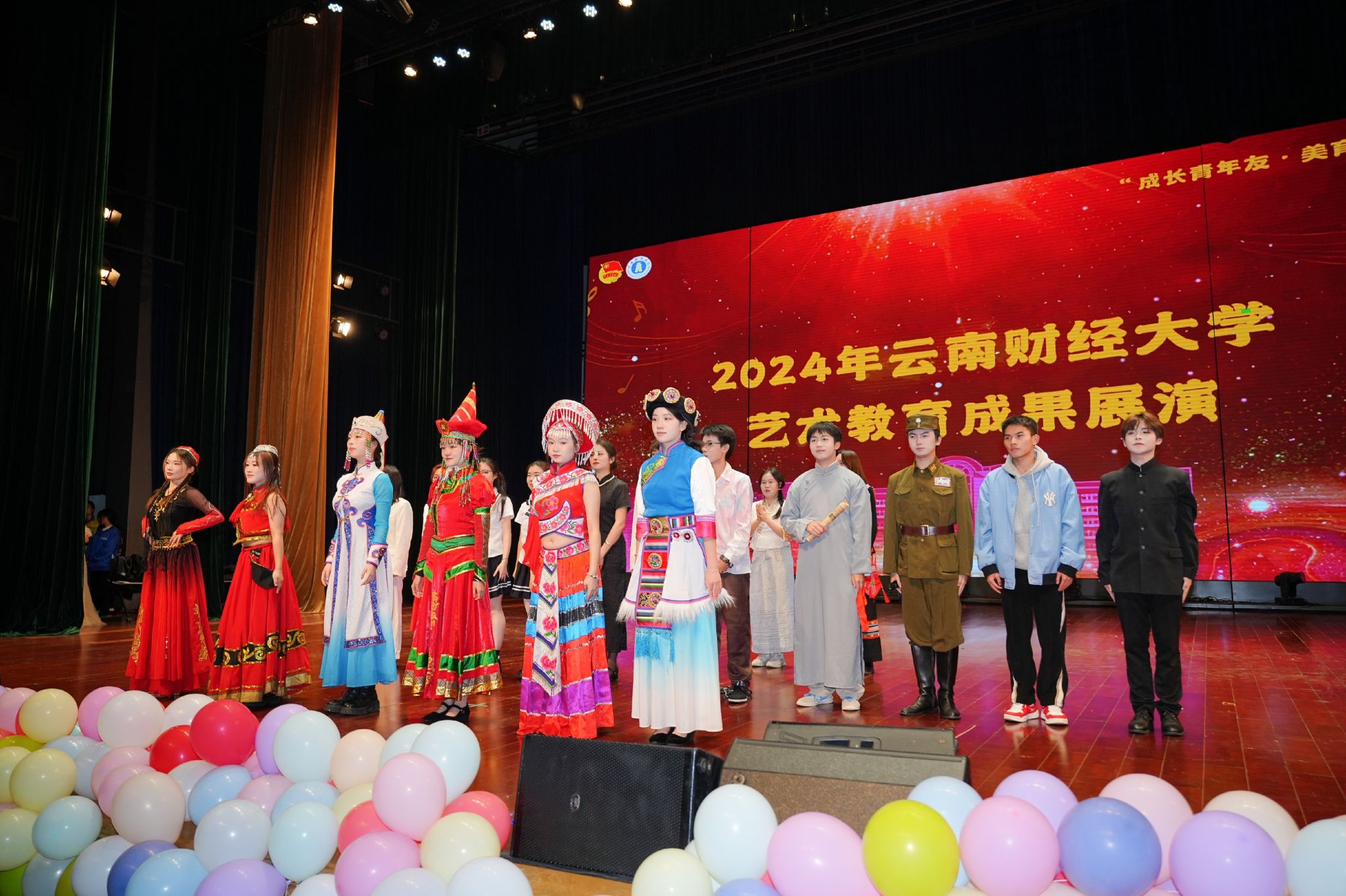 大学生艺术团通过音诗画舞台剧《民族团结一家亲,我们都是收信人!》讲述了各民族在新时代携手共进、建设家园的动人故事。安宁校区话剧团带来了《只此云南》等3个话剧节目。