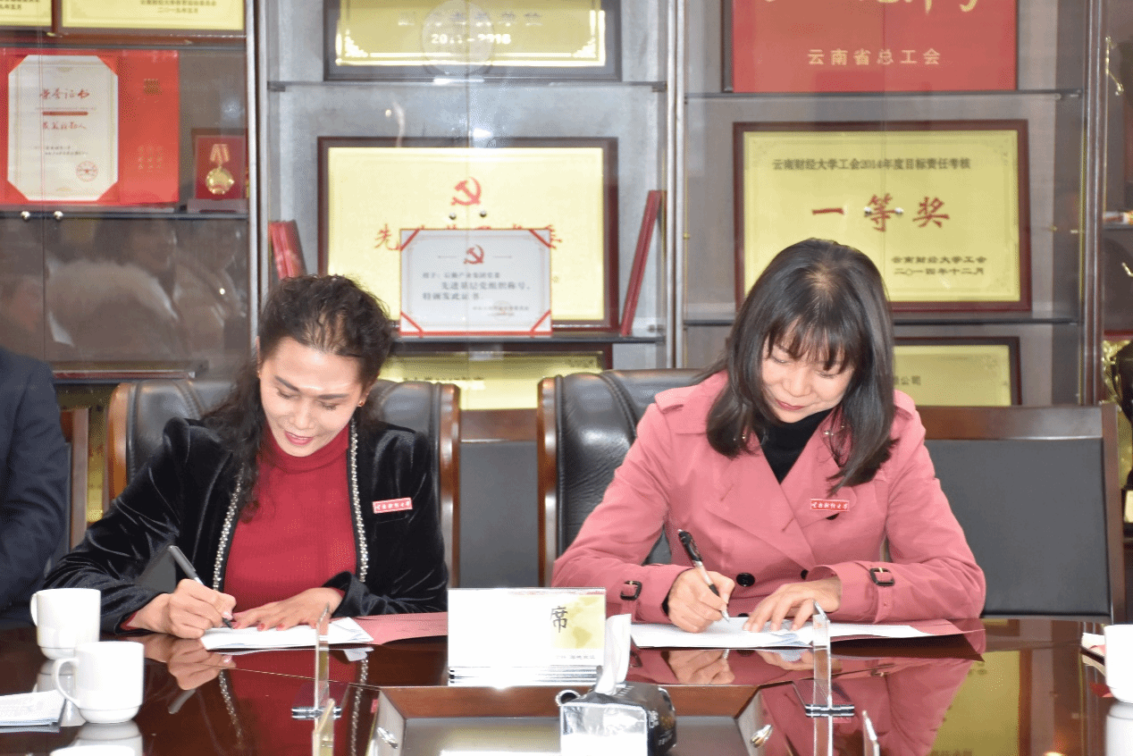 国有资产管理处处长杨琳代表学校与云南致远后勤服务有限责任公司董事、总经理李光香签署《授权经营协议书》。